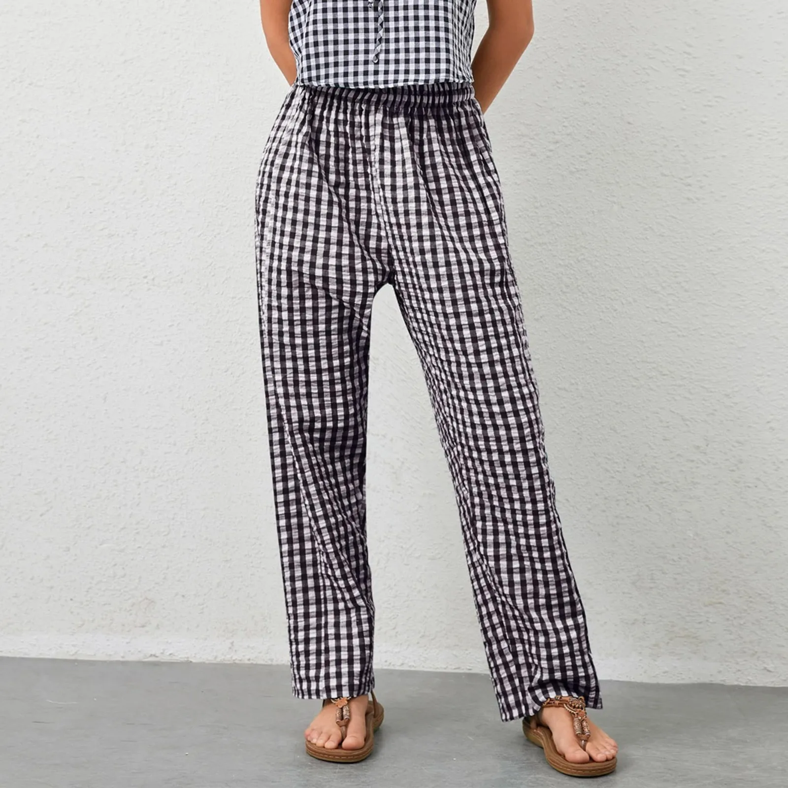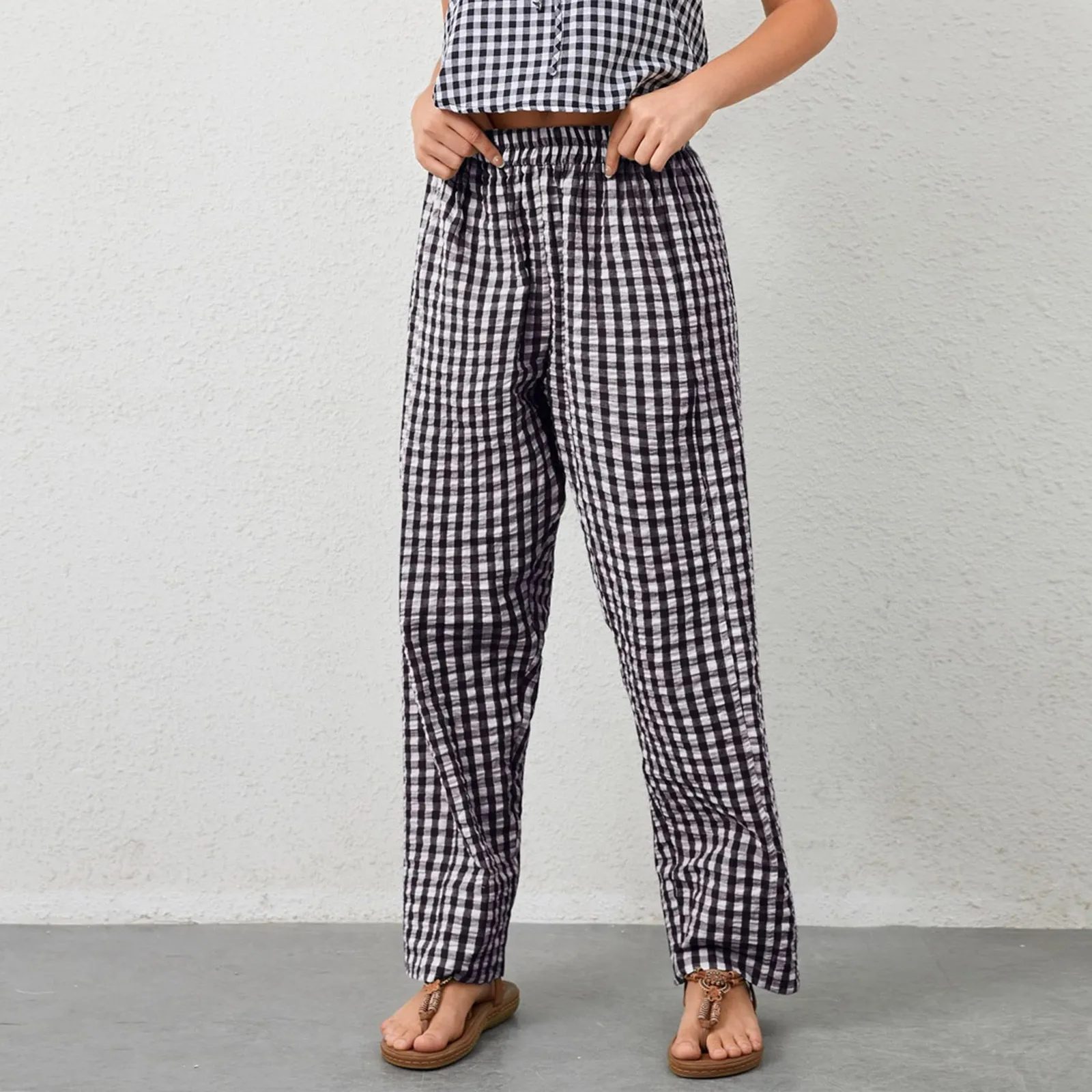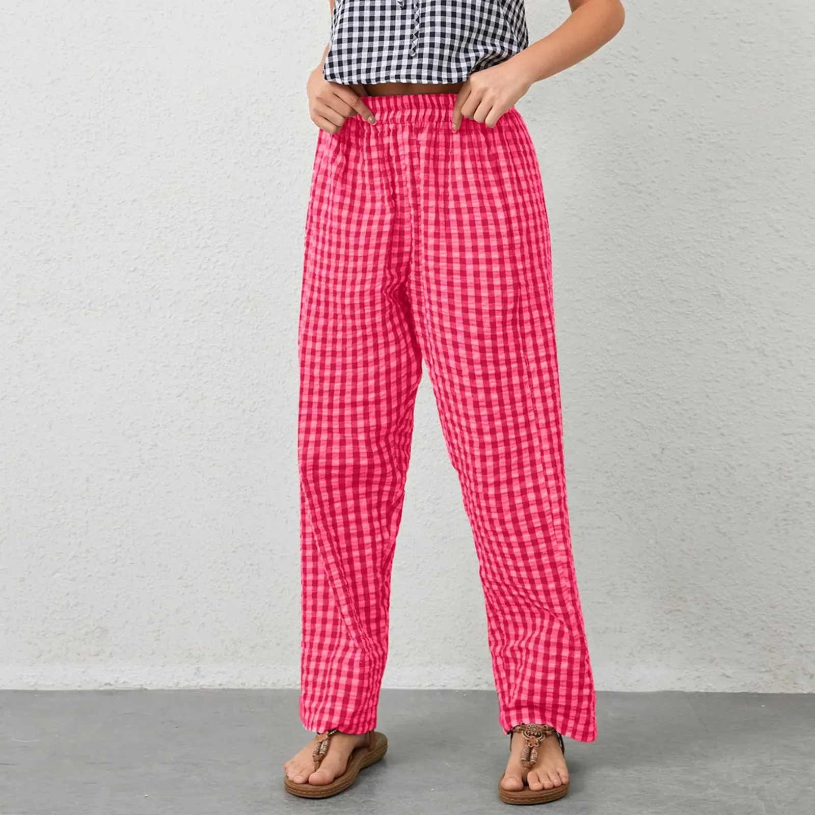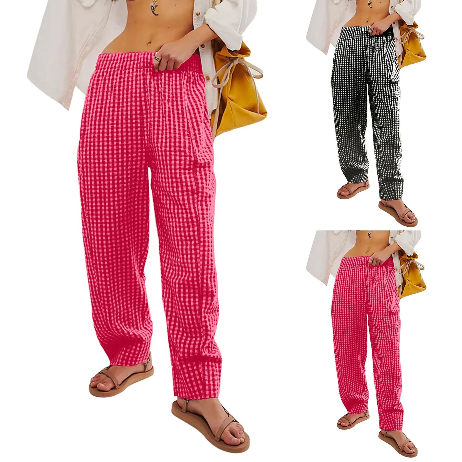 Name | Summer Autumn Women's Y2K Vintage Summer Casual Ankle-Length Pants Plaid Drawstring High Waist Straight Leg Trousers Daily Wear |