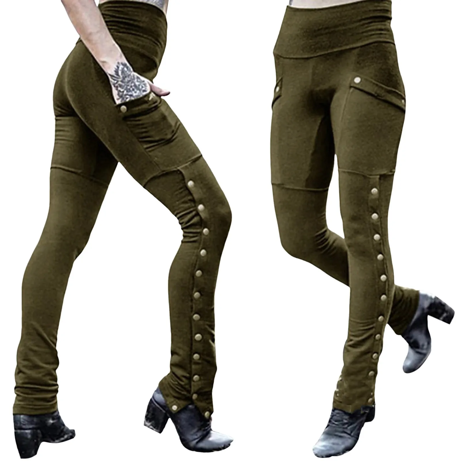 Name | Pants Costumes for Women Medieval Gothic Steampunk Rivet Split Leg Pants Elastic Pocket Pencil Pants Female Clothes |