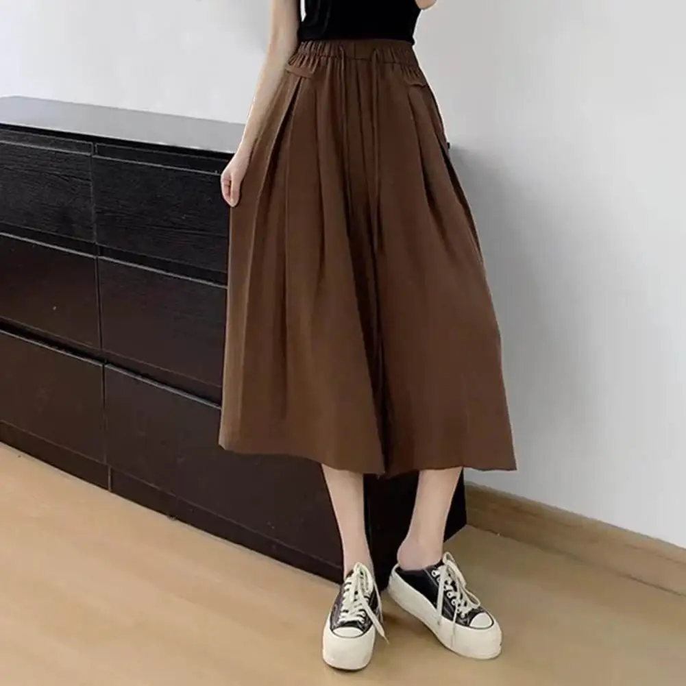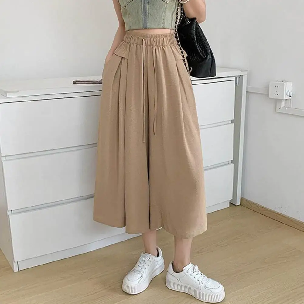 Wide-leg Pants Draped Wide-leg Culottes Summer Draped Ice Silk Culottes Wide-leg Elastic Waist Pants for Streetwear