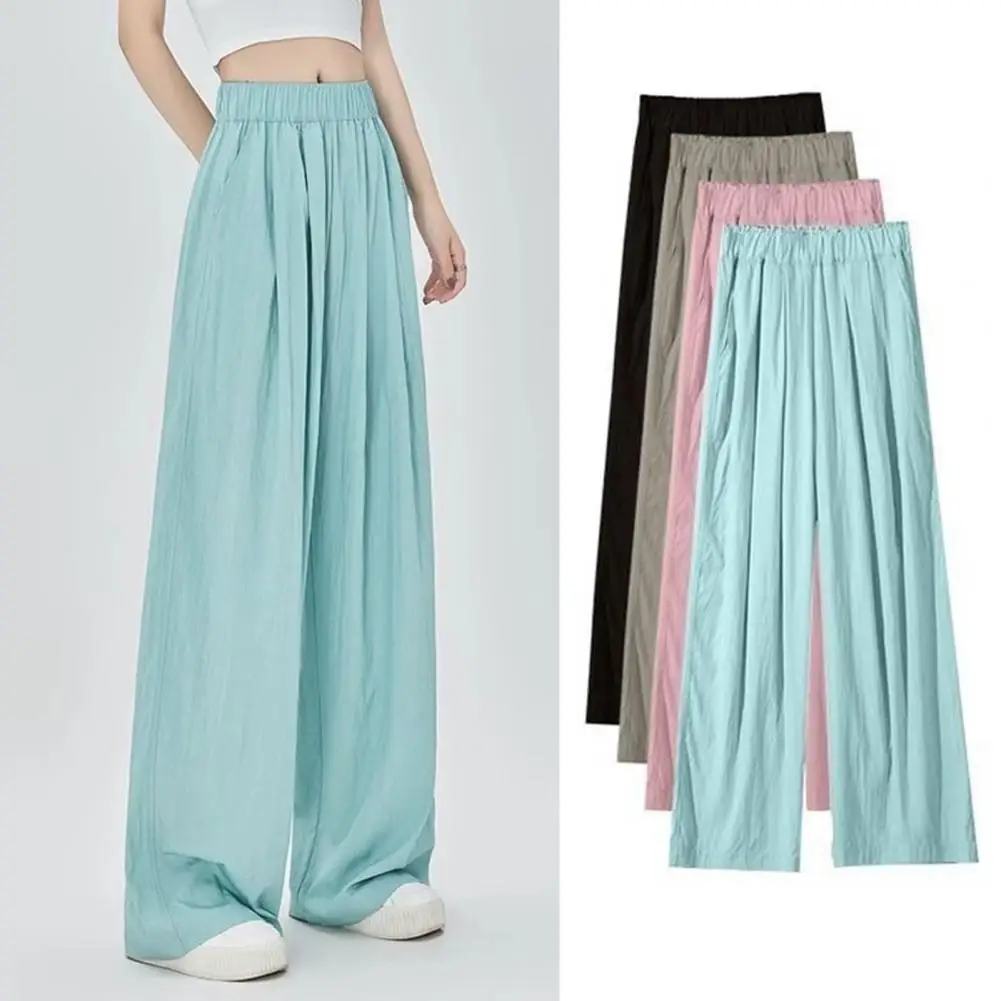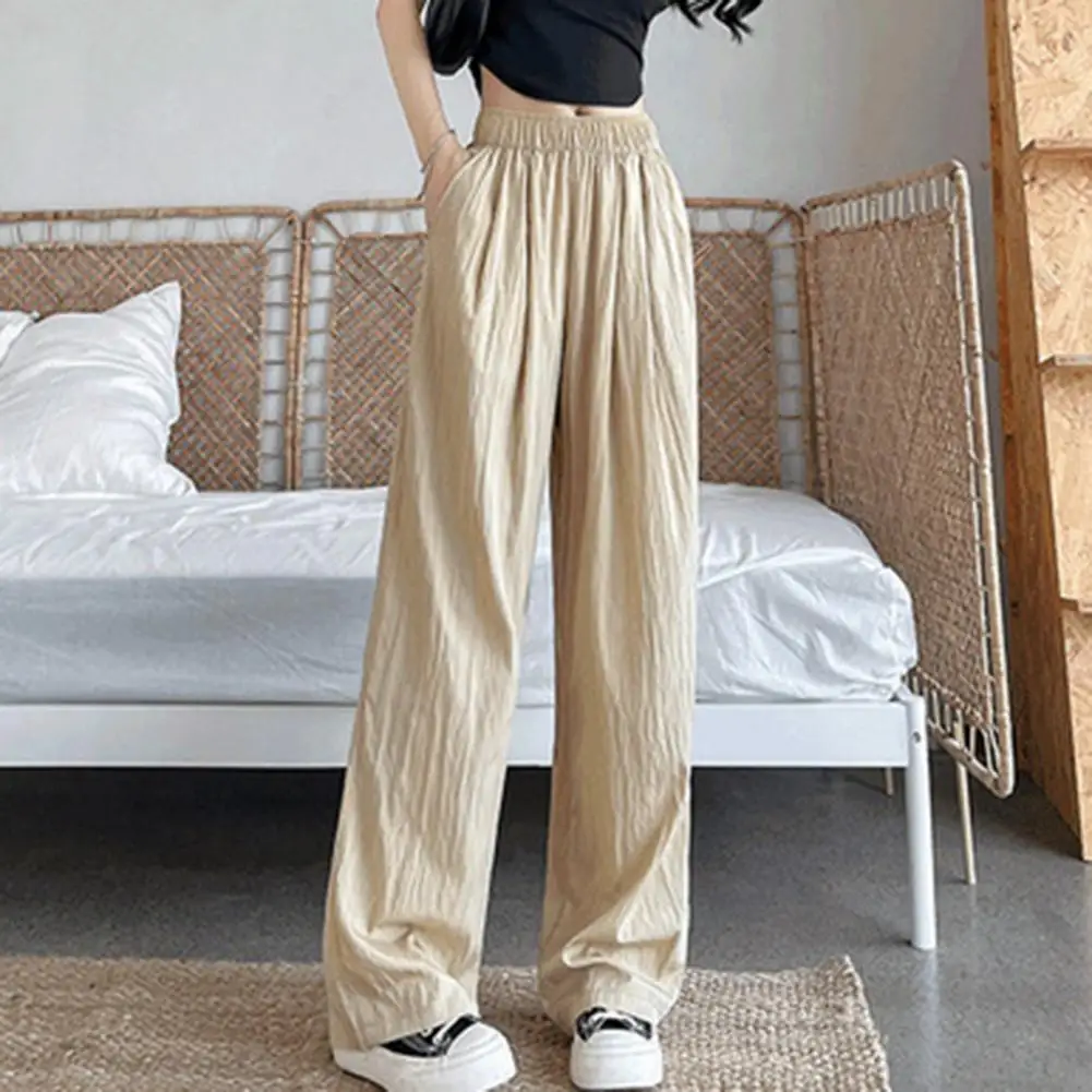 Women Bottoms Elegant Wide Leg Pleated Trousers for Women High Waist Solid Color Pants for Work Leisure Elastic Waist Trousers