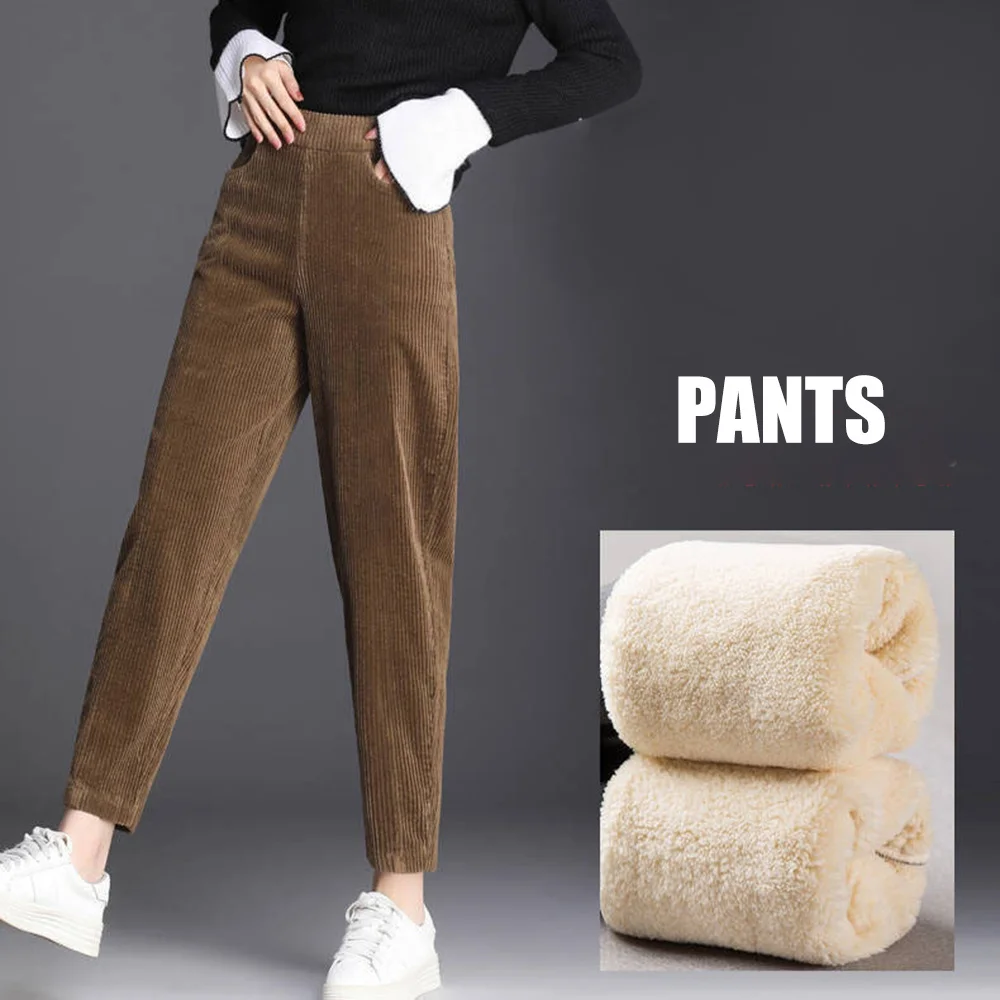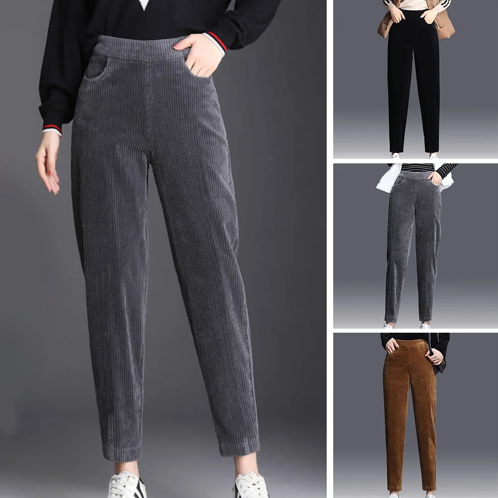 Name | Women's High Rise Tapered Pants Elastic Waist Corduroy Trousers With Pocket Clothing For Lady For Winter Fall Straight Leg |