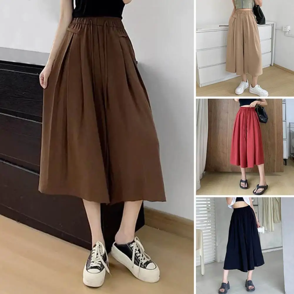 Wide-leg Pants Elastic Waist Culottes Summer Draped Ice Silk Culottes Wide-leg Elastic Waist Pants for Streetwear for Body