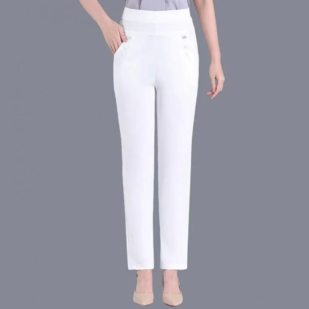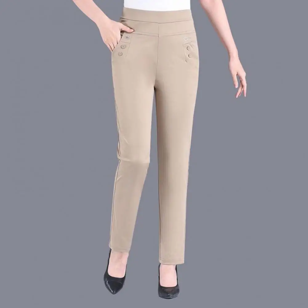 Name | 2024 Women Fashion With Pockets Casual Basic Solid Pants Vintage High Waist Zipper Fly Female Ankle Trousers Pantalones |
