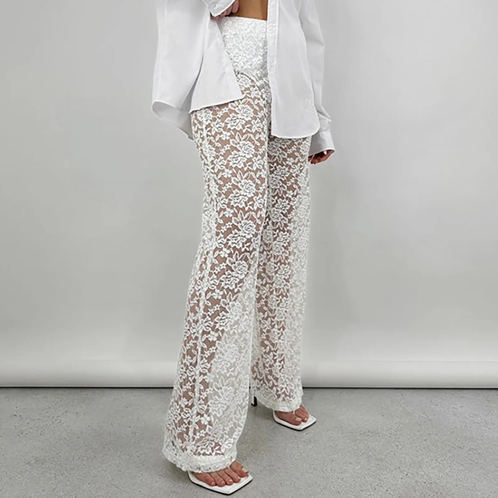 Name | Sexy All-match Lace See-through Pants High Waist Pant Women Splicing Long Casual Y2K Straight Trouser Sexy Streetwear Pants |