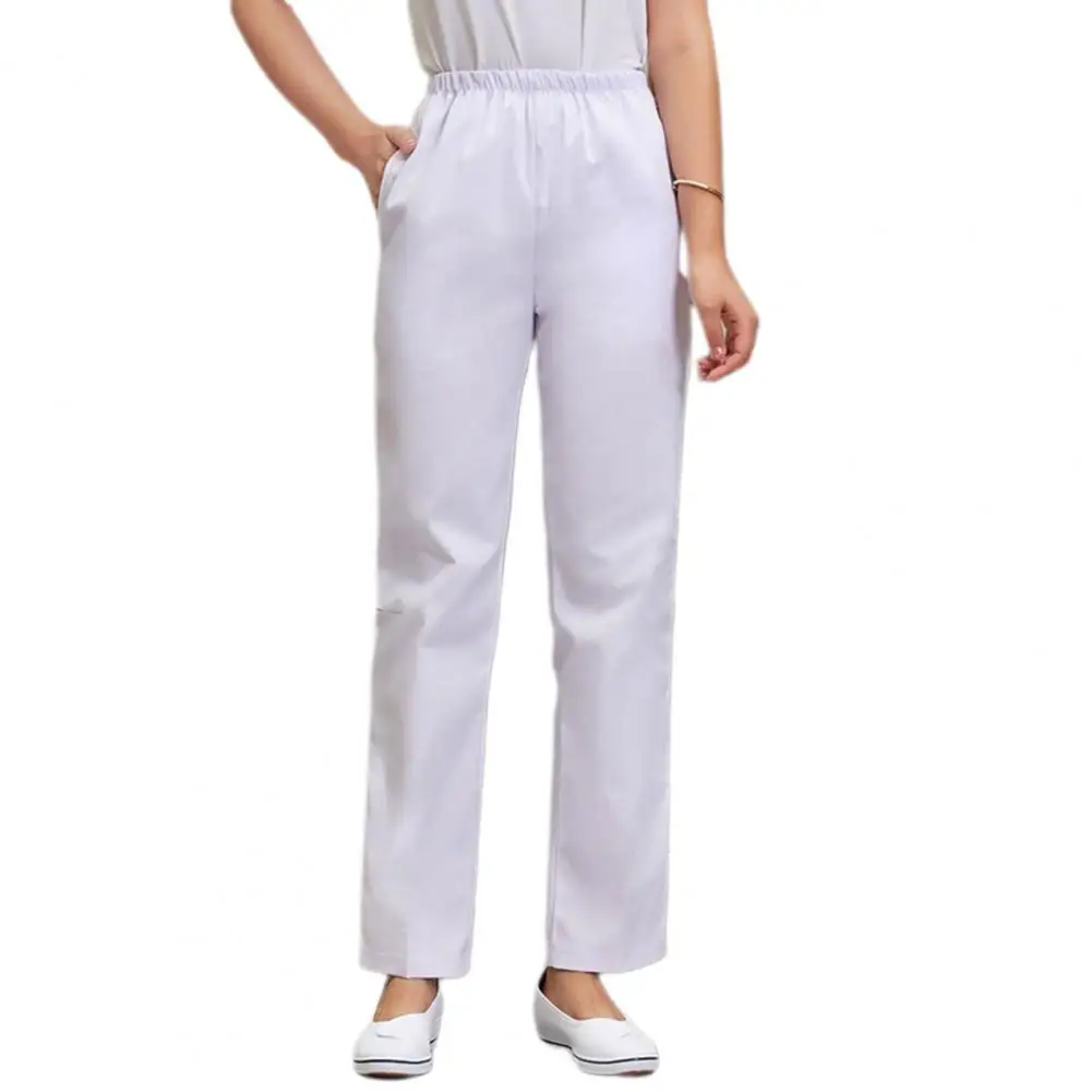 Lightweight Nurse Scrub Bottoms Comfortable Wide Leg Nurse Pants for Doctors Nurses Mid-rise Elastic Waist Work Trousers Solid