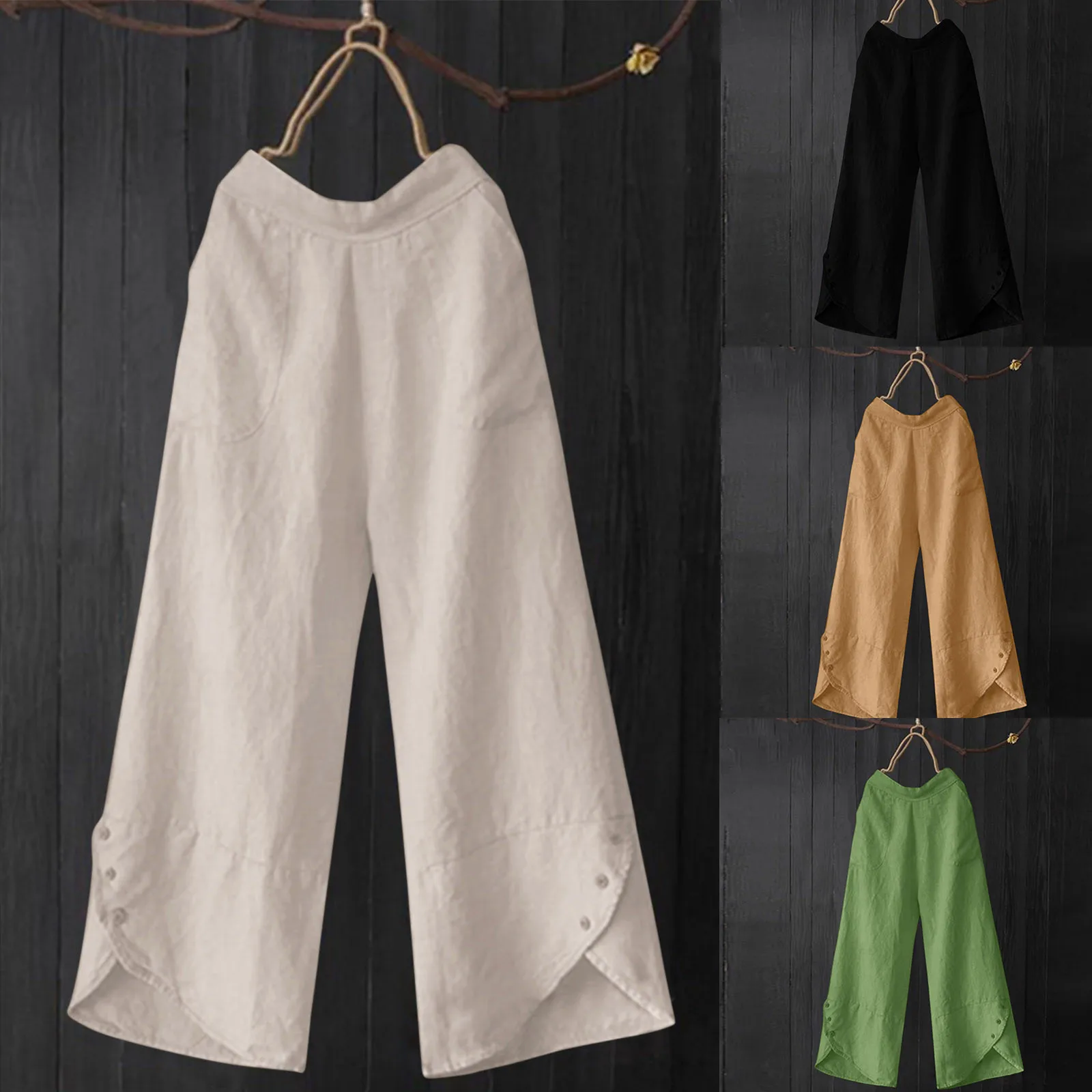 Women Wide Leg Pants Spring Summer Solid Color Casual Women Elastic Waist Cotton Linen Pants Female Comfortable Soft Loose Pants