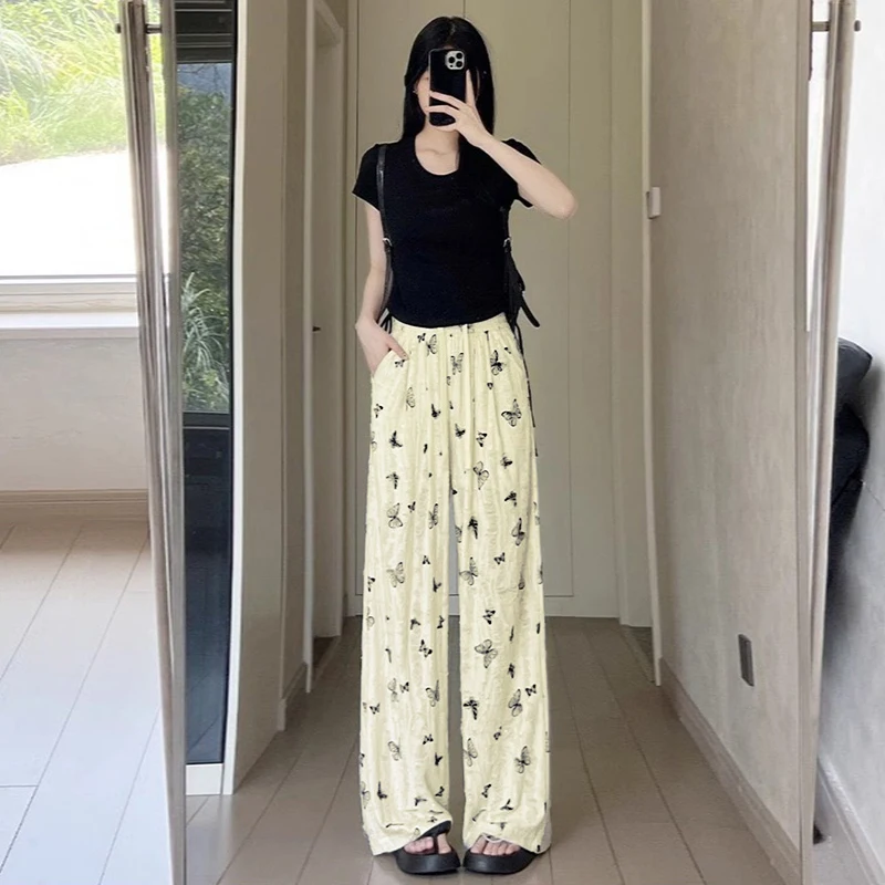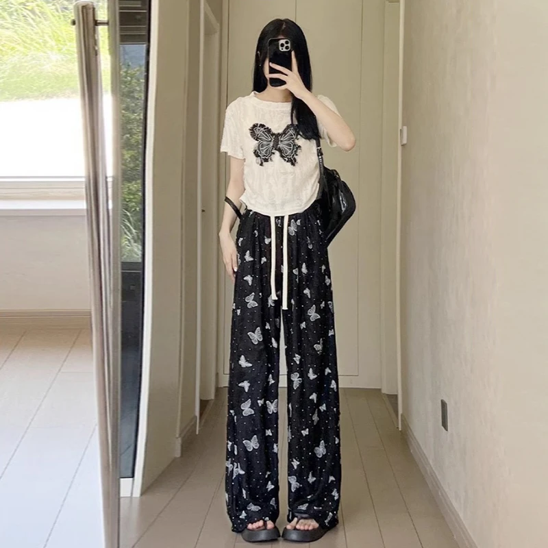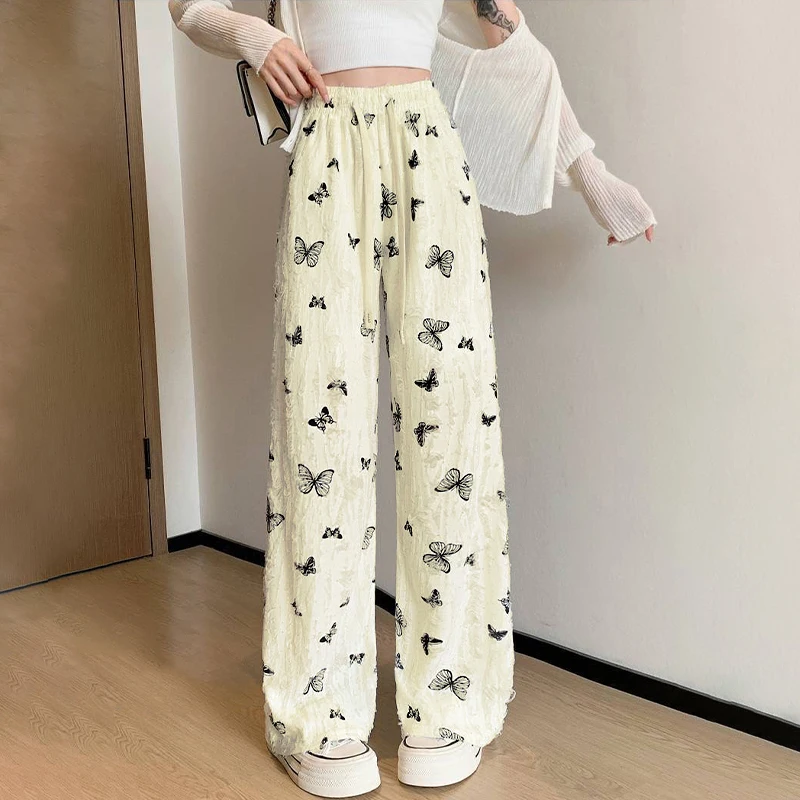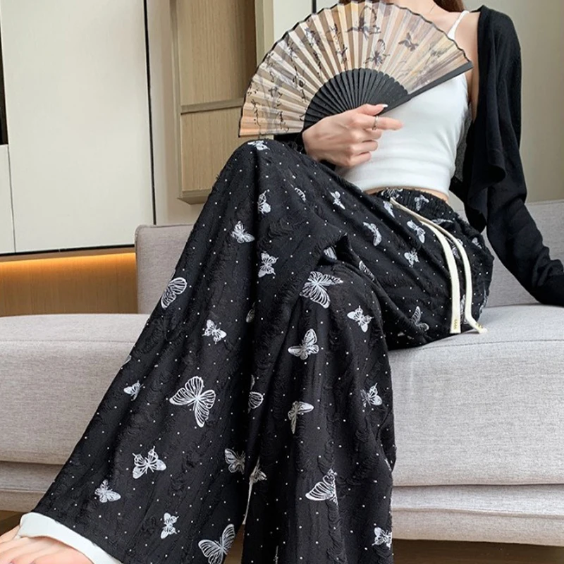 Fashion Casual High Waist Loose Butterfly Hollow Wide Leg Pants For Women