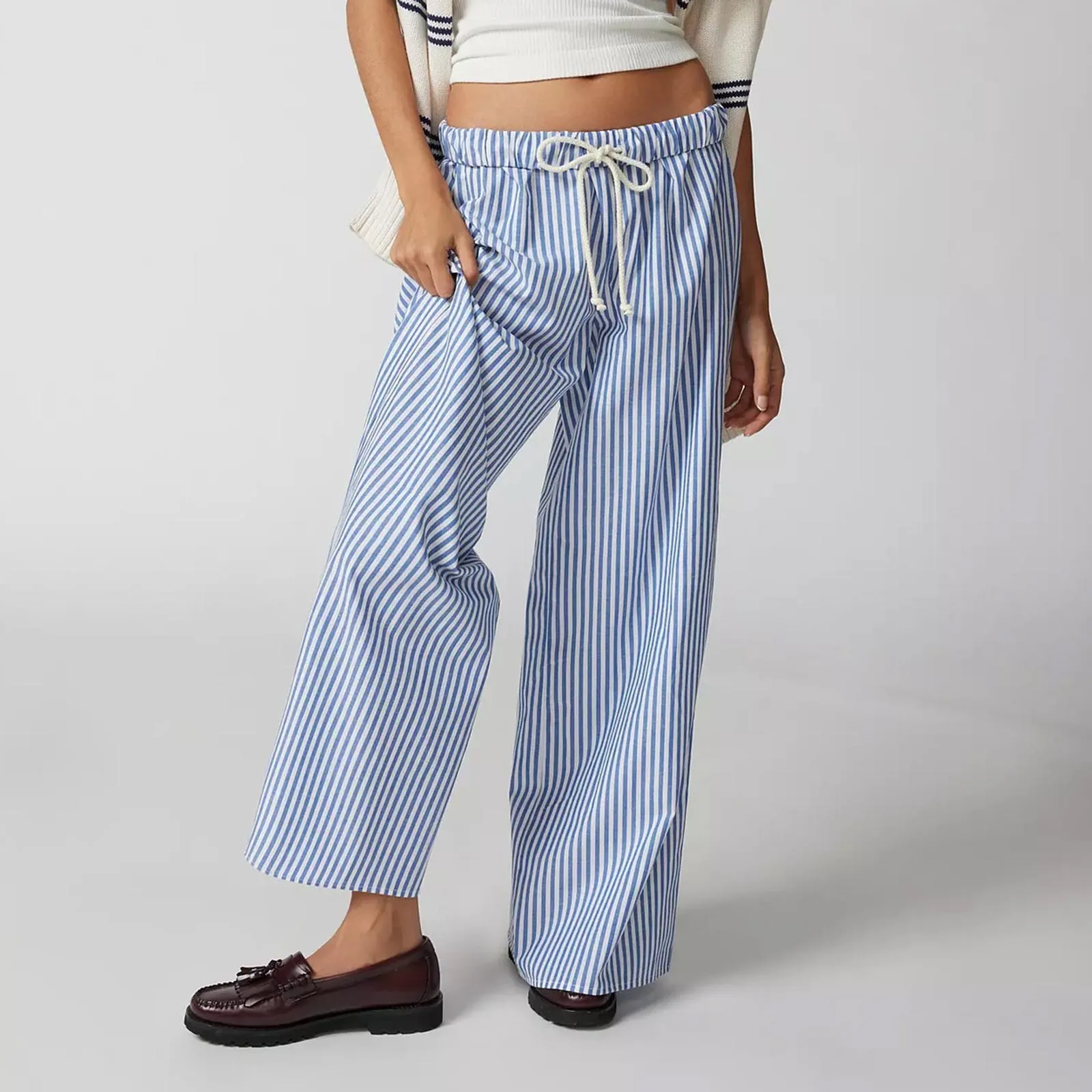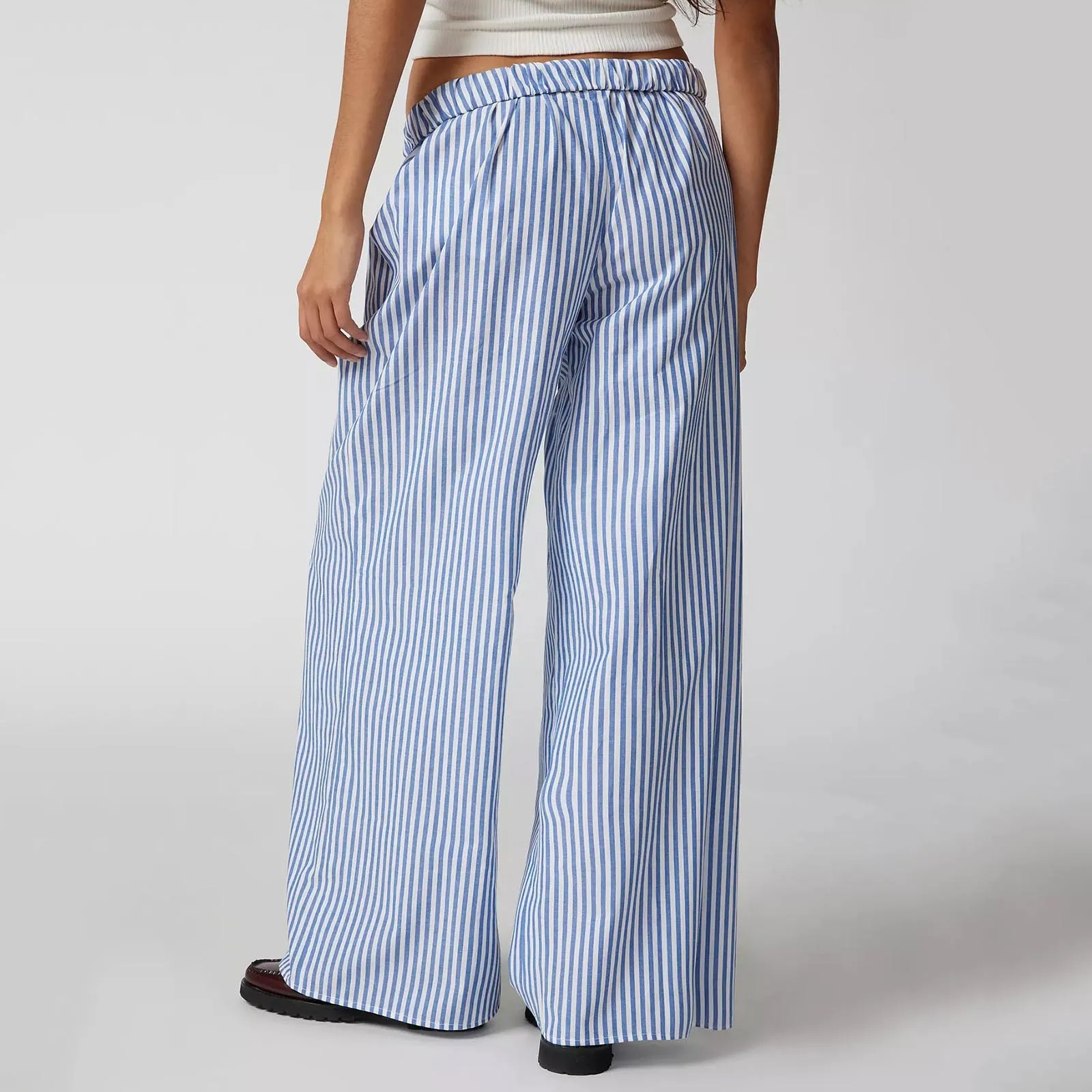 Name | Women's Casual Straight Pants Plaid/Striped Print Elastic Waist Lounge Trousers with Pockets Retro Streetwear Loose Bottoms |