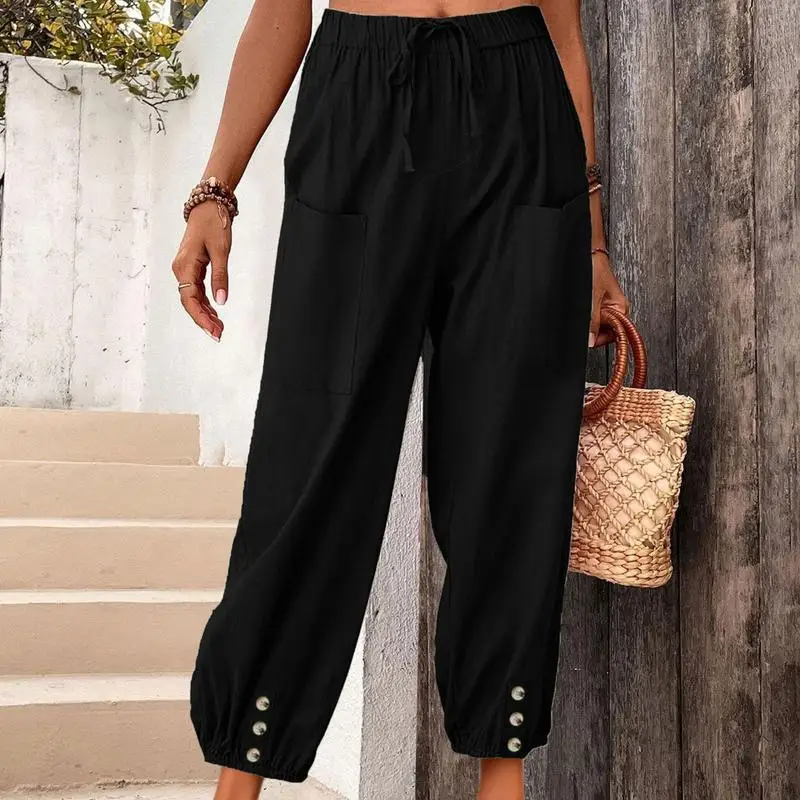 Name | High Waist Wide Leg Pants For Women Fashion Women's Casual Cotton Linen Pants Summer Casual Elastic Waist Loose Capri Yoga Pants |