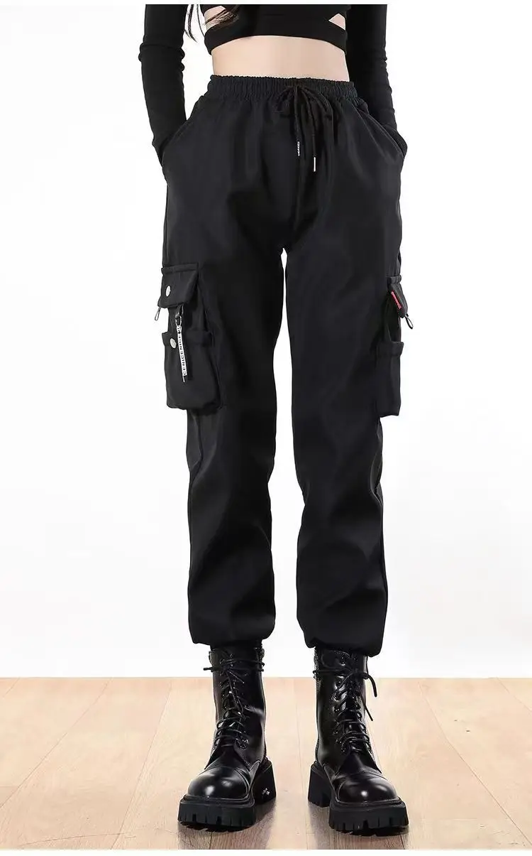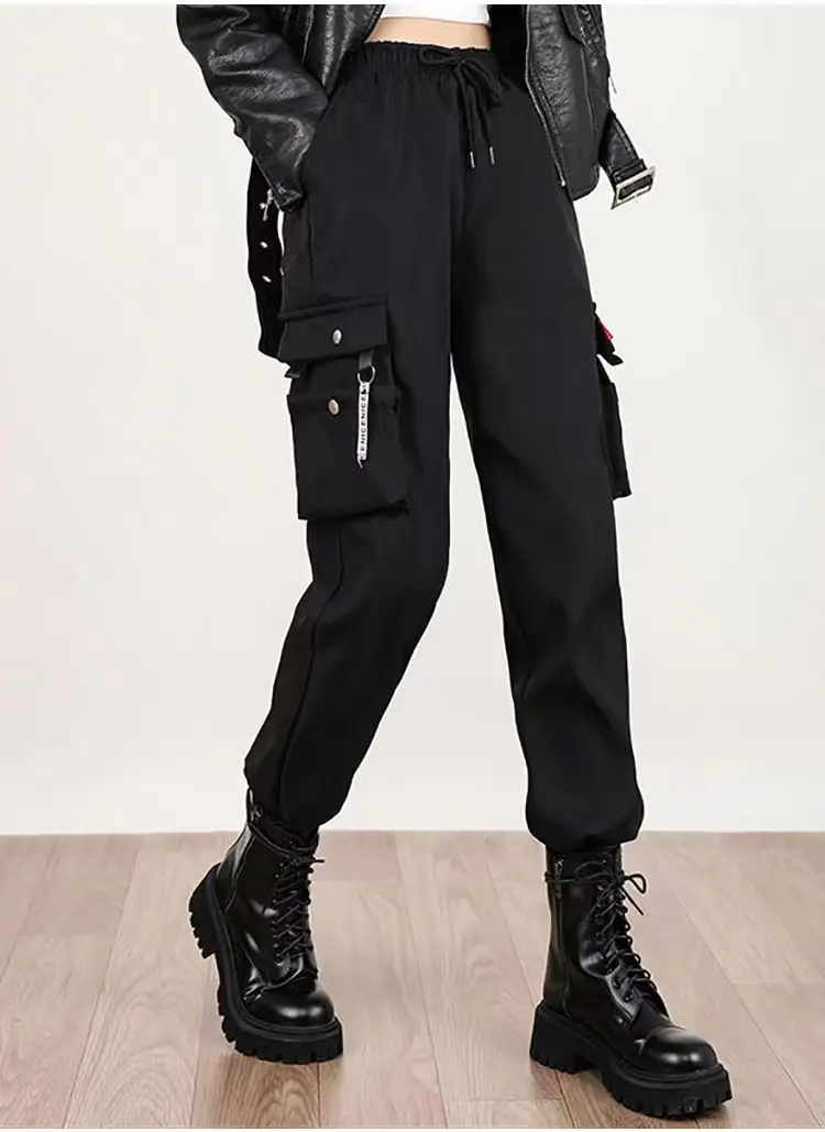 Name | New Women Cargo Pants Ins Harem Pants Fashion Punk Pockets Jogger Trousers With Chain Harajuku Elastics High Waist Streetwear 32 |