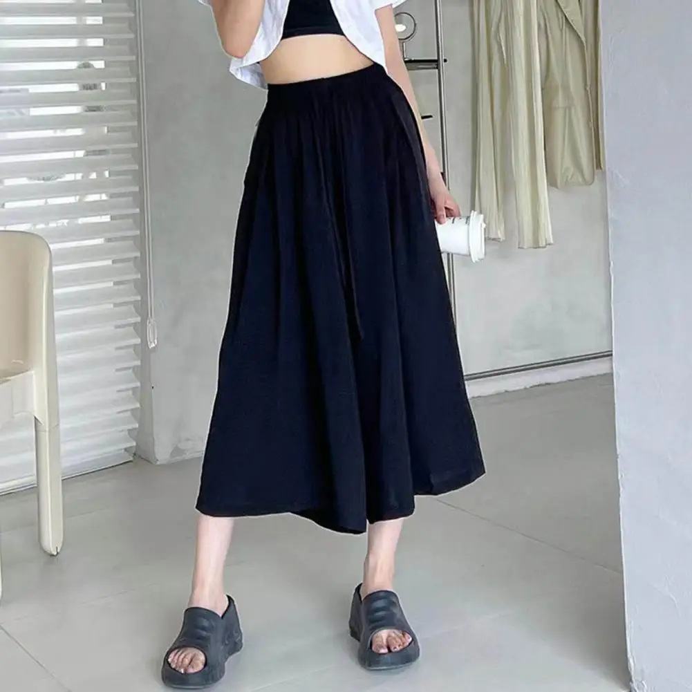 Wide-leg Pants Summer Draped Ice Silk Culottes Wide-leg Elastic Waist Pants for Streetwear Casual Wide-leg Pants