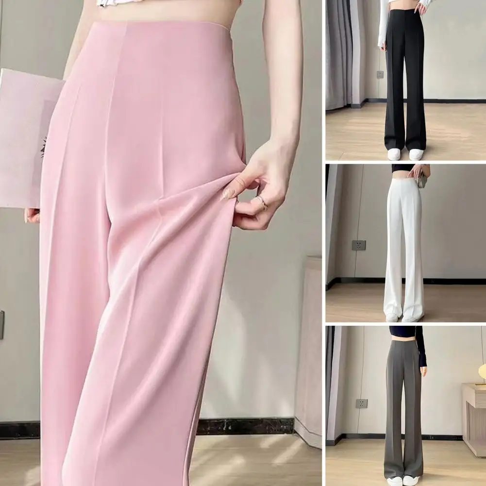 Women Summer Suit Pants High Waist Straight Wide Leg Long Trousers Solid Color Slight Flared Casual Pants Workwear