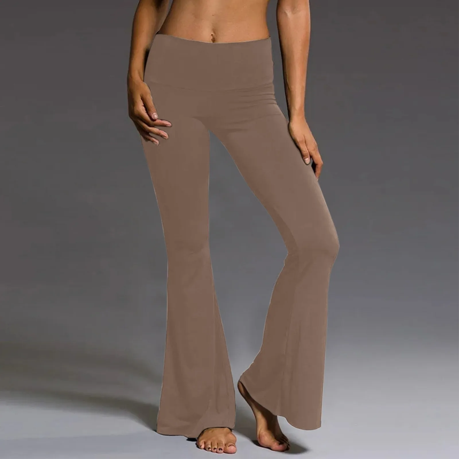 New In Workout Leggings For Women Plus Size High Waist Wide Leg Palazzo Bell Bottom Yoga Pants Solid Color Flare Pants Trousers