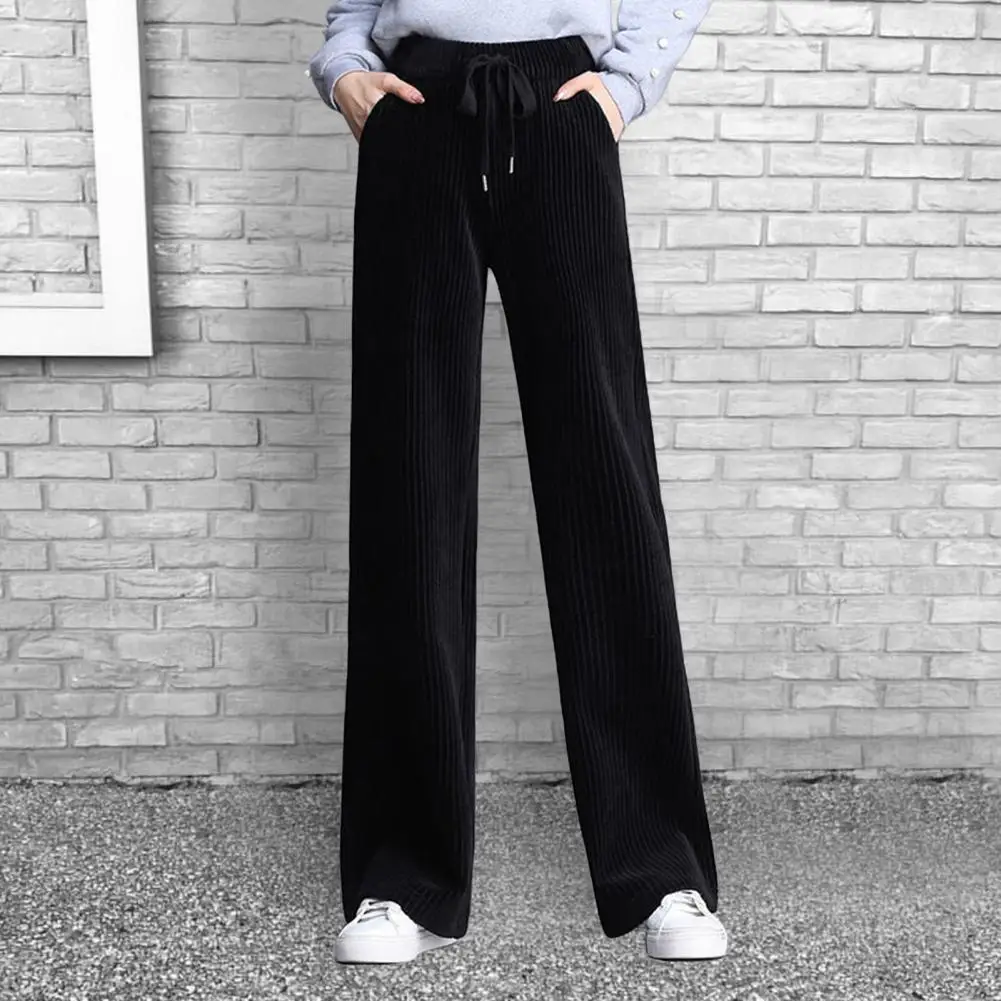 Casual Wide-leg Pants Cozy Plush Women's Drawstring Sweatpants with High Waist Wide Leg for Warmth Comfort Soft Lady Long