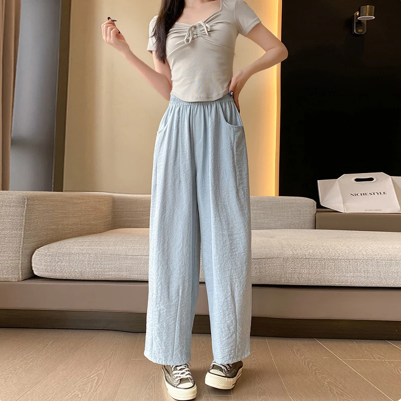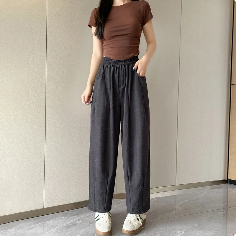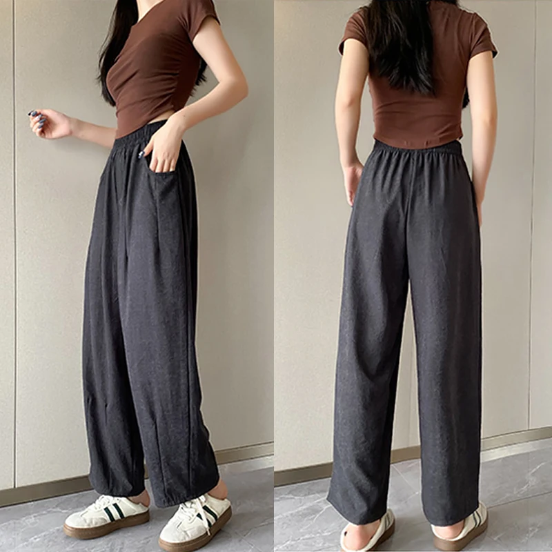 Fashion Japanese Loose High Waist Casual Solid Color Wide Leg Pants For Women