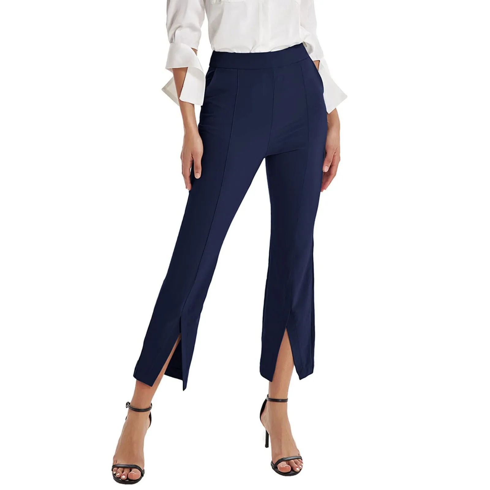 Name | Summer Flare Pants Women Front Slit Slim Fit Flare Pants Solid Color High Waist Female Trousers Elegant Office Ladies Trousers |