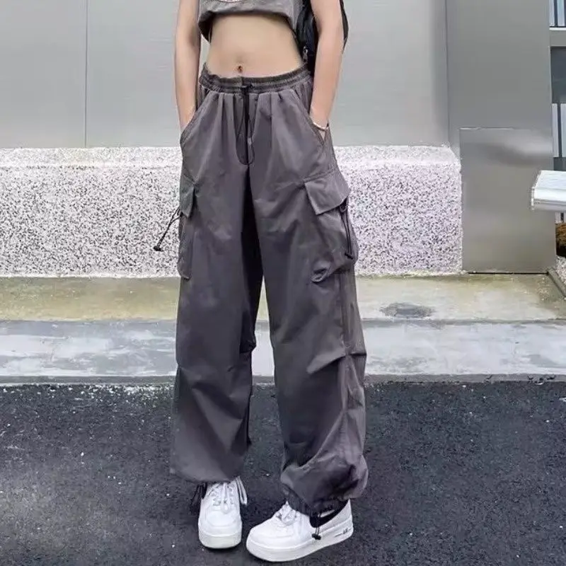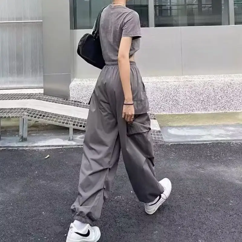Multi-pocket Sweatpants Cargo Pant for Women Korea Style Simple Women Trousers Solid High Waist Slim Summer Female Wide Leg Pant