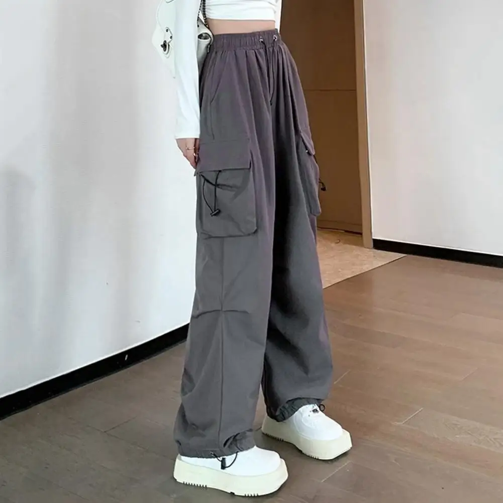Name | Wide-legged Pants Wide-legged Women's Cargo Pants Elastic Waist Quick-drying Sports Trousers with Multi Pockets for Streetwear |