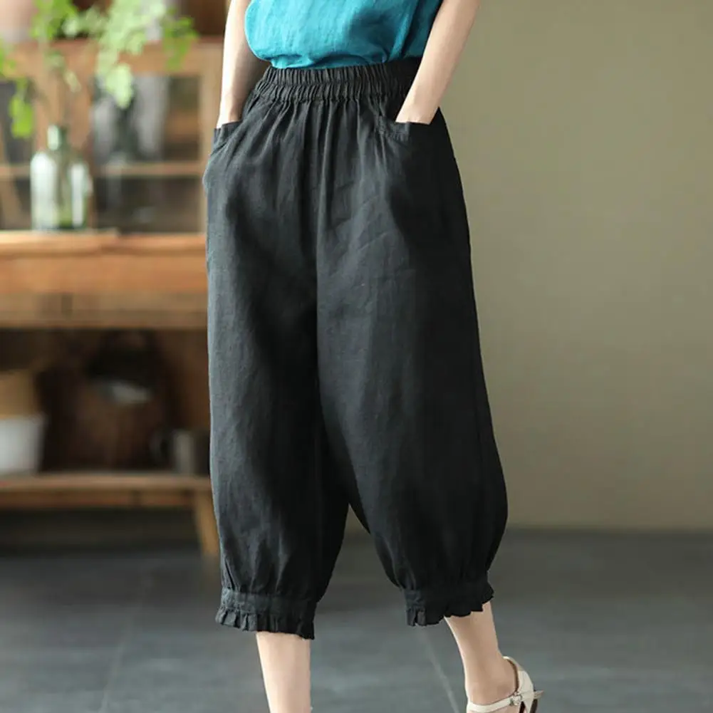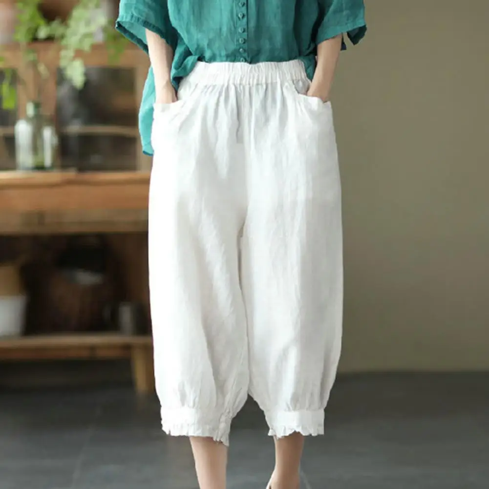 Cotton Linen Harem Pants For Women Vintage Printed Wide Leg Trousers Casual Pockets Wide Leg Cropped Pants Pants Joggers Women