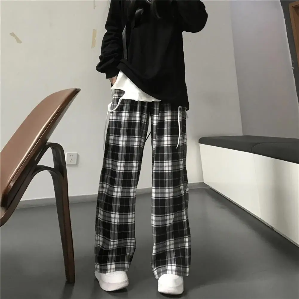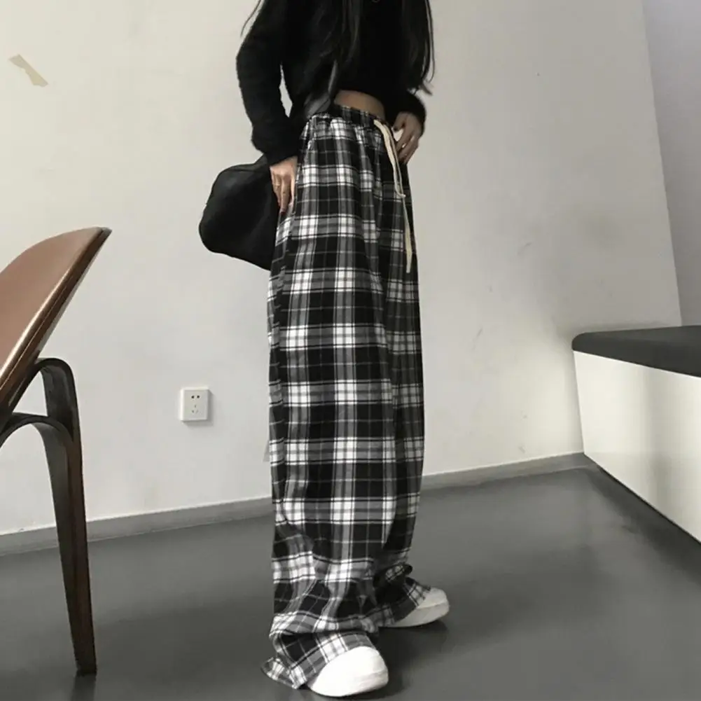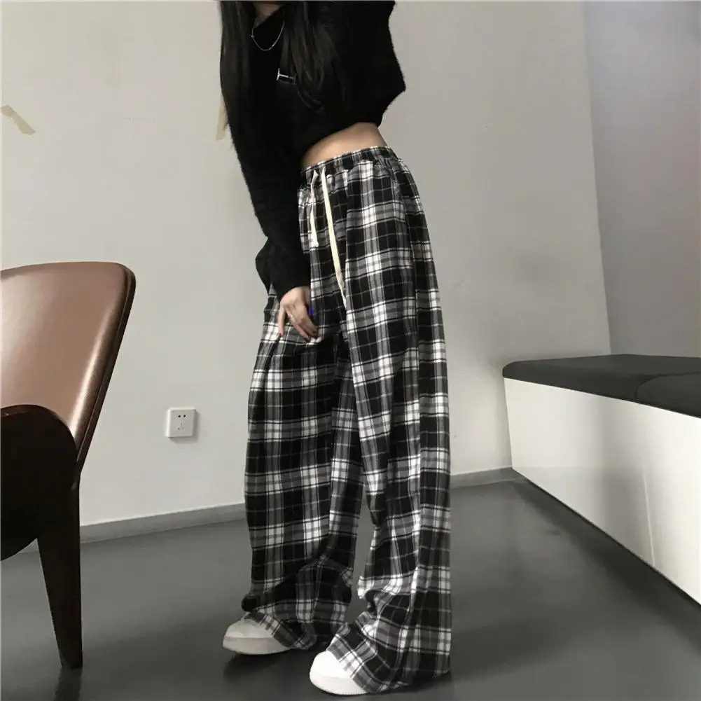 Lady Sweatpants Women Trousers Plaid Print Wide Leg Sweatpants for Women High Elastic Waist Streetwear Trousers with Loose Fit