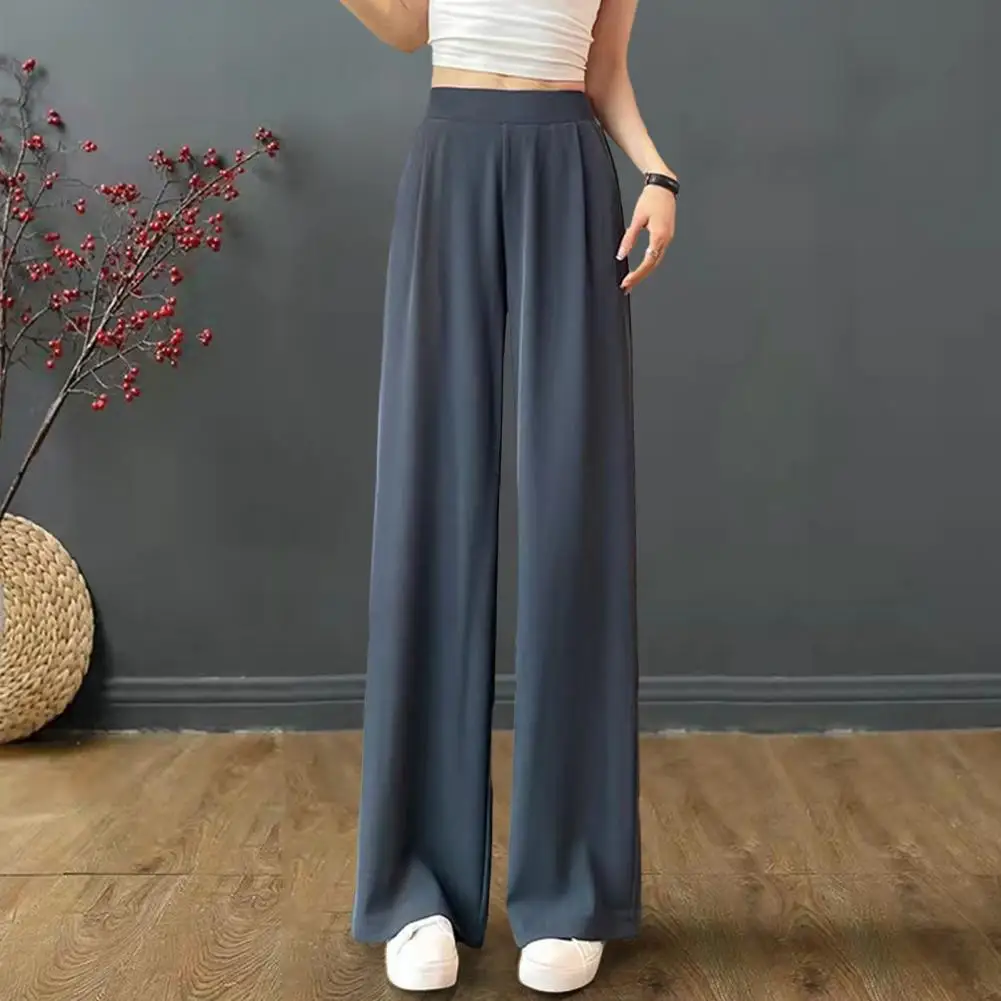 Women's Pants Summer Pockets Wide Leg Pants Full Length Casual Solid White Loose High Waist Straight Trousers Women