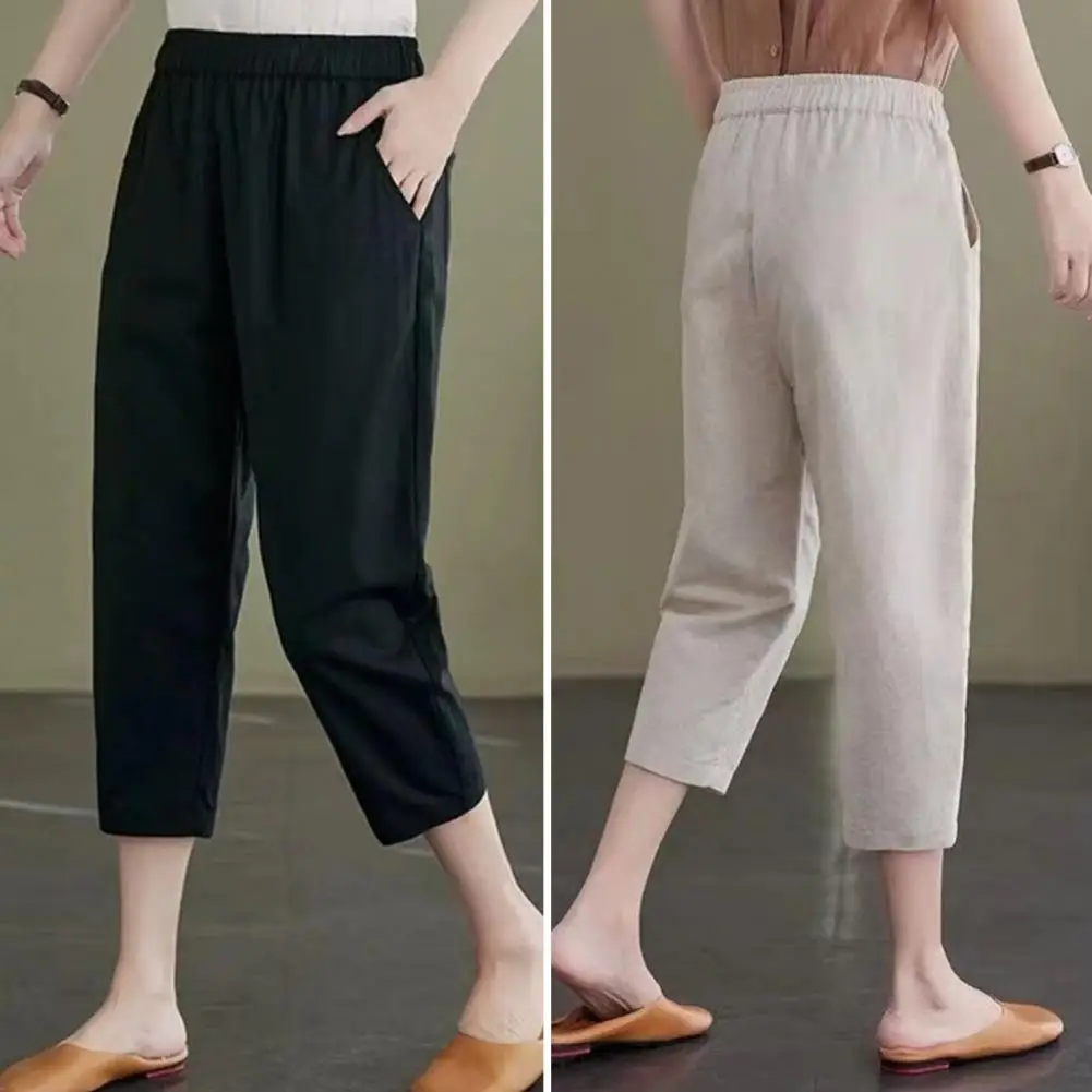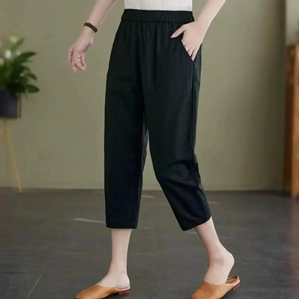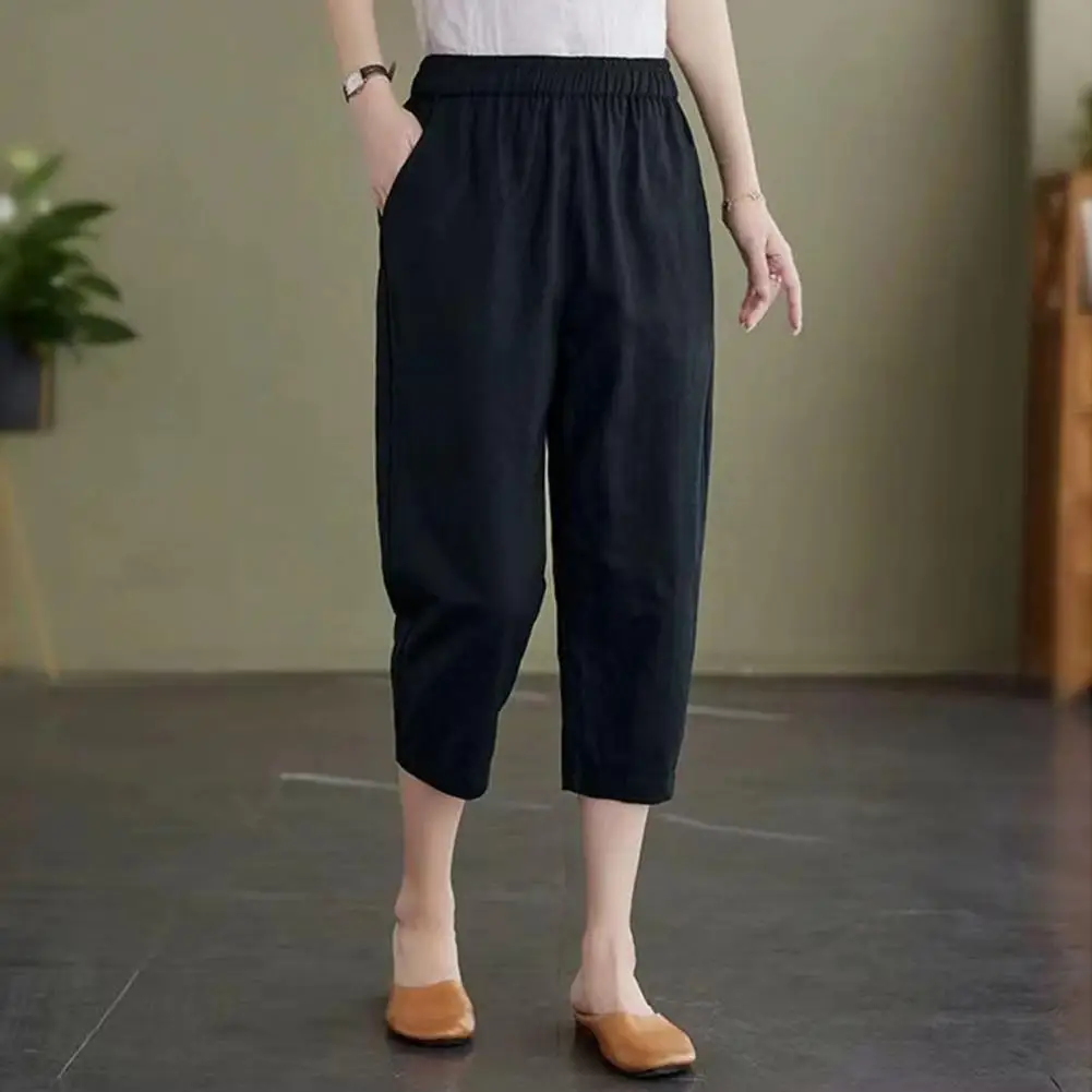 Name | Elastic Waist Pants Stylish Women's Mid-calf Harem Pants Elastic Waist Solid Color Pockets for Summer Casual Wear Cropped Pants |