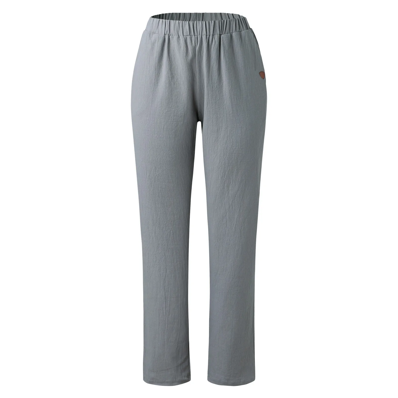 Women's Cotton Linen Pants Spring And Summer Solid Colour Casual Loose Elastic Waist Trouser Wide Leg Long Pants With Pockets