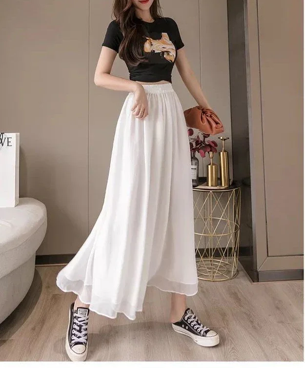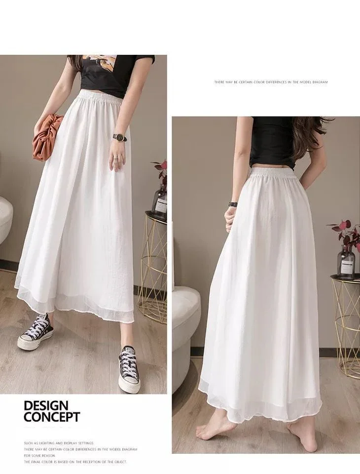 Chiffon Straight Losse Wide Leg Ankle-Length Pants Women Clothes Summer Plus Size High Waisted Casual Trouser Solid Elegant New