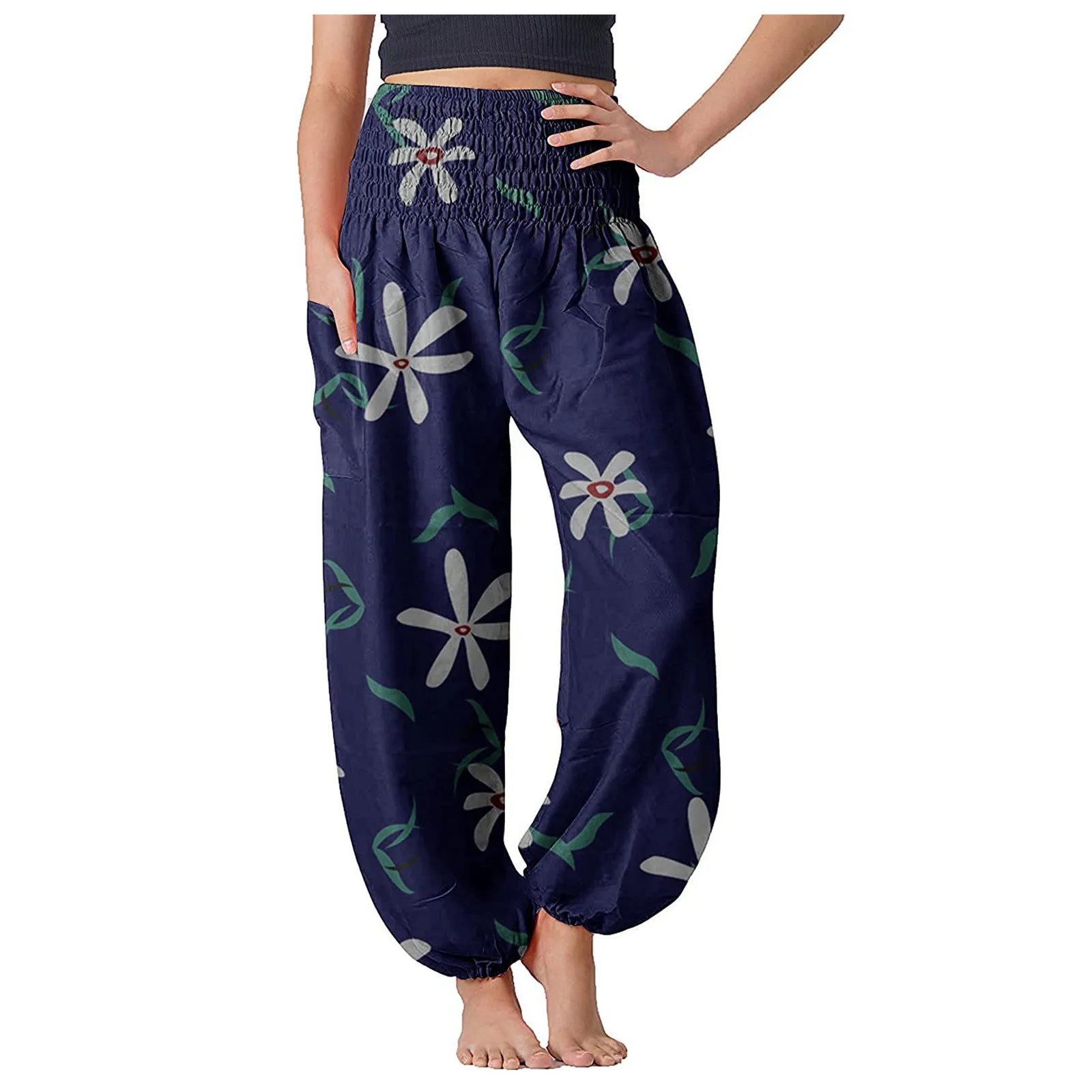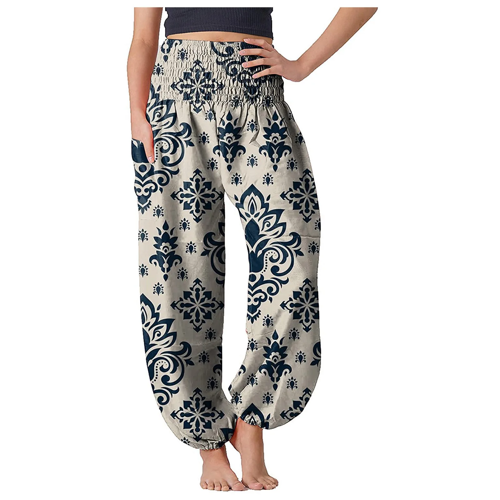 Boho Hippie Pants Comfy Women'S Straight Wide Leg Jogging Sweatpants Female Pajama Vantage Flowers Print Trousers Loose Pantalon