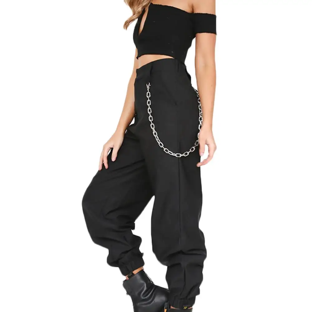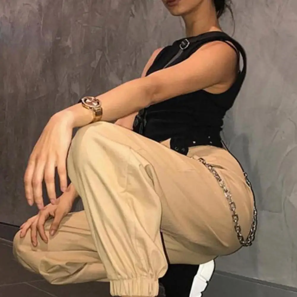 Name | Trousers Women Solid Color Loose Elastic Pocket Cargo Pants Harem Trousers with Chain Loose Pants Hip Pop Trousers Streetwear |