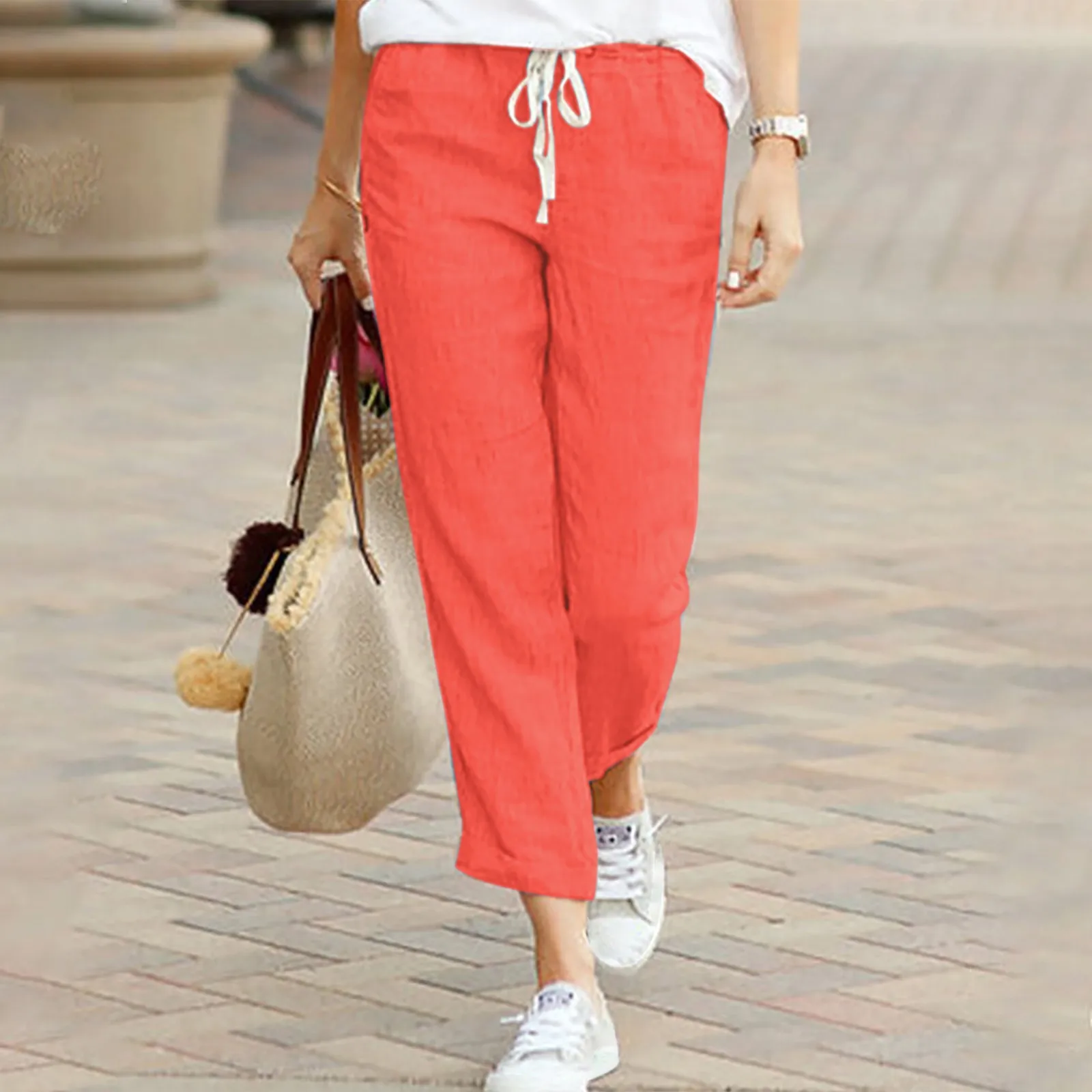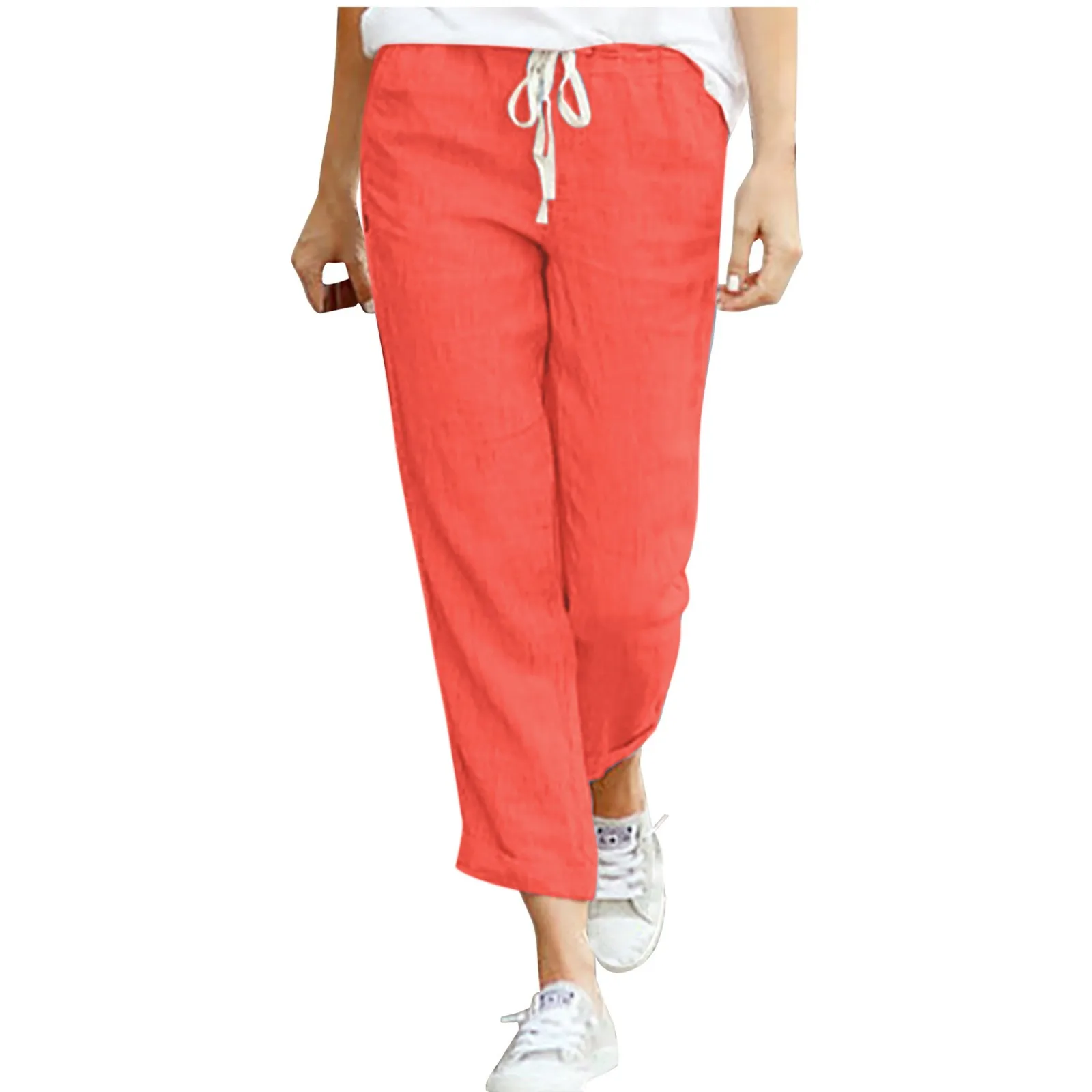 Name | Summer Casual Solid Color Cotton Linen Women's Pants Drawstring Elastic Waist Casual Pants Female Loose Fashion Streetwear |