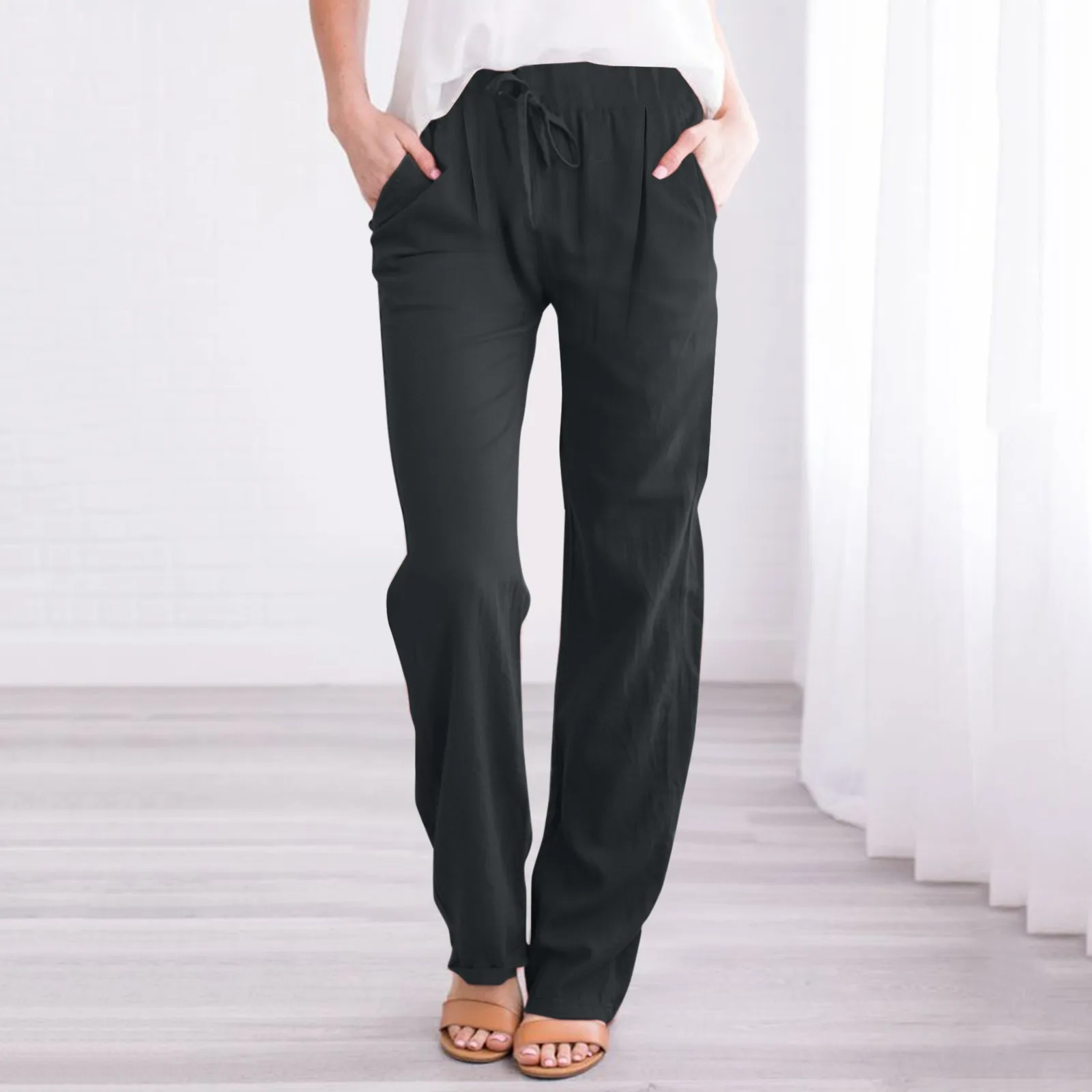Name | 2023 Summer Cotton Linen Women'S Pants Pockets Drawstring Elastic Waist Casual Harem Pants Female New Fashion Elegant Trousers |
