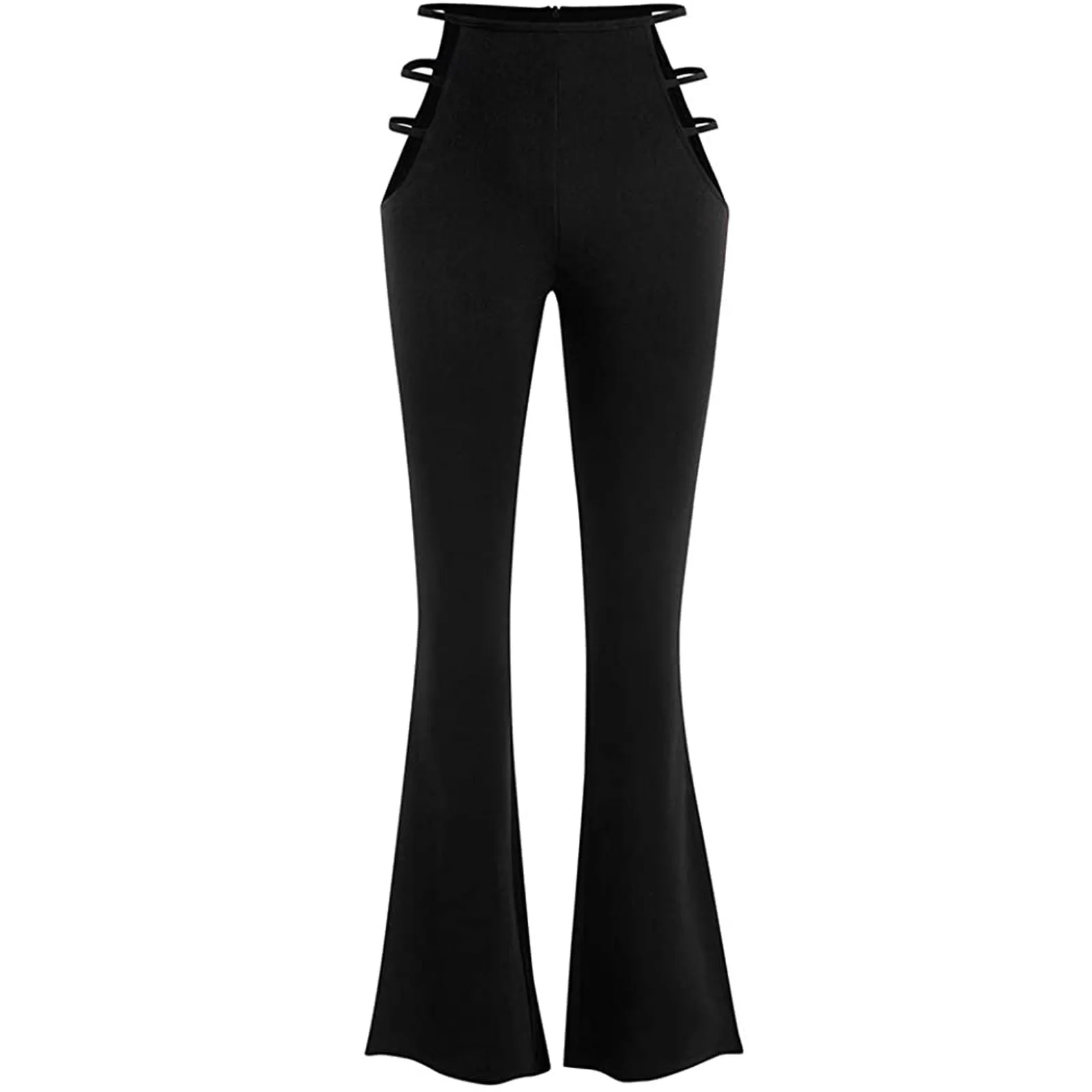 Name | Women Punk Style Cut Out Flare Pants Slim Hips Long Trousers Fashion Y2k Low Waist Solid Stretch Bell Bottoms Pantalones |
