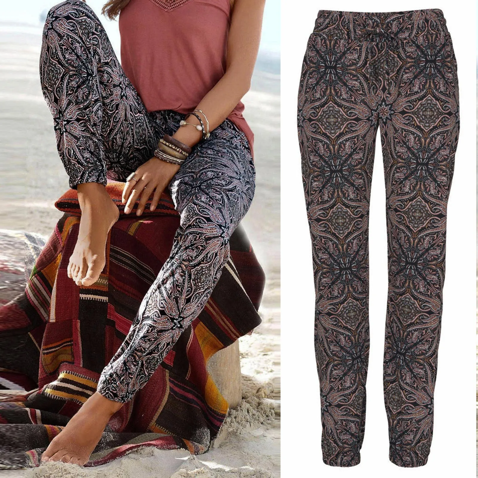 Boho Beach Pants Women High Waist Printing Trousers With Pockets Pantalones Summer Casual Trousers Sweatpants брюки женские