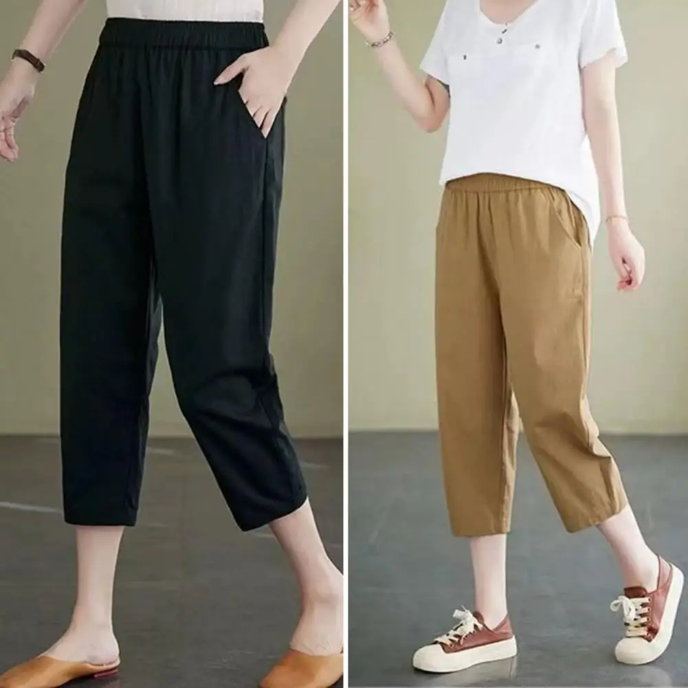 Name | Cotton Linen Women Jogging Pants Classic Solid Color Bandage Pants Loose Double Pocket Trousers Leisure Streetwear |