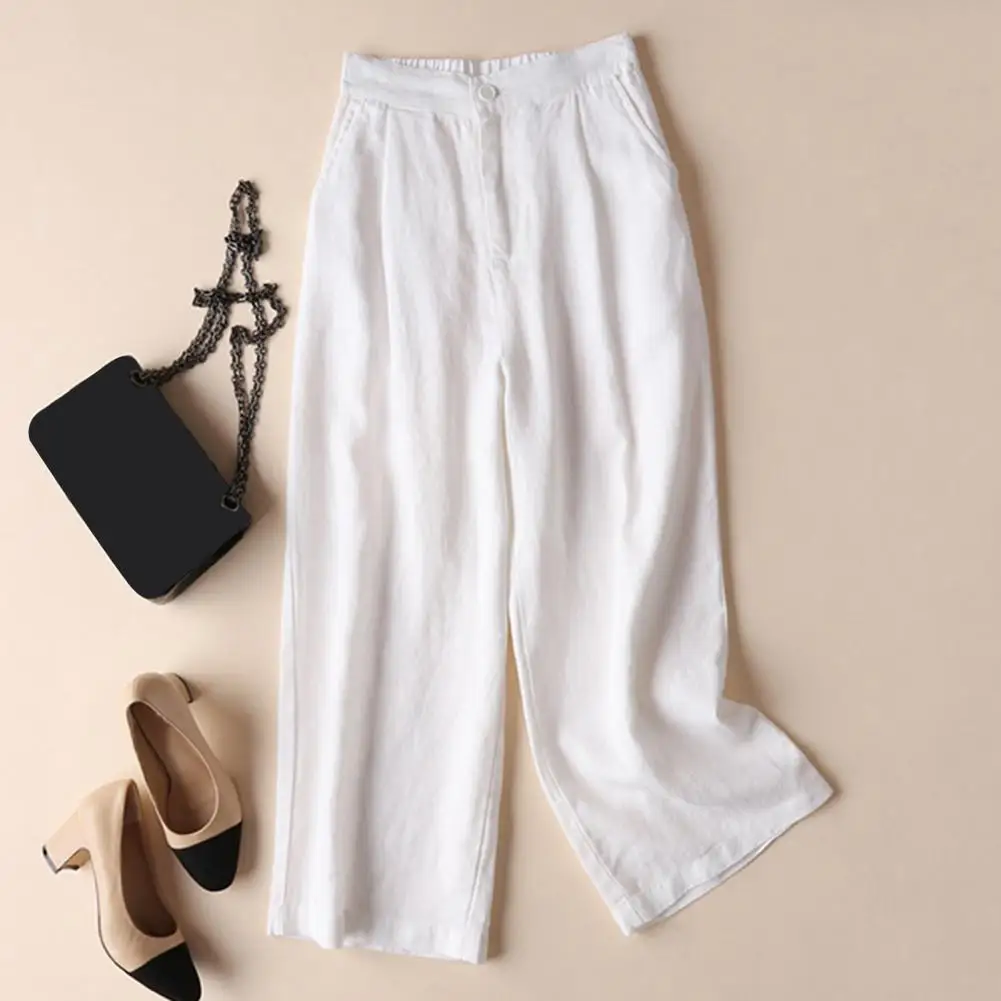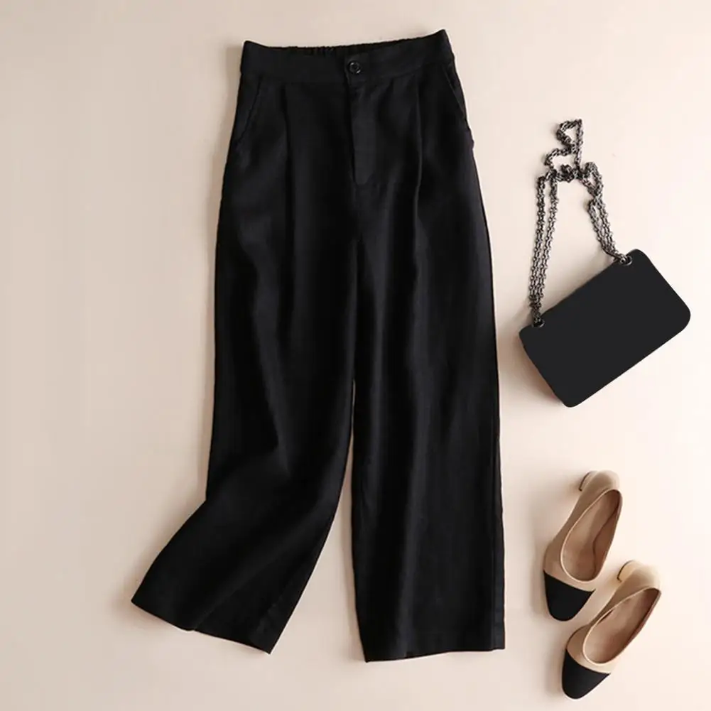 Name | Solid Color Casual Trousers Soft Touch Women Trousers Versatile Women's Casual Pants Mid-rise Elastic Waist Loose Fit for Office |