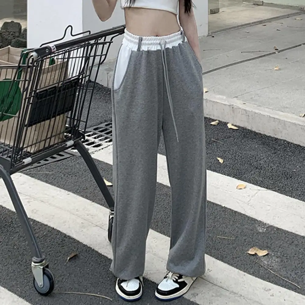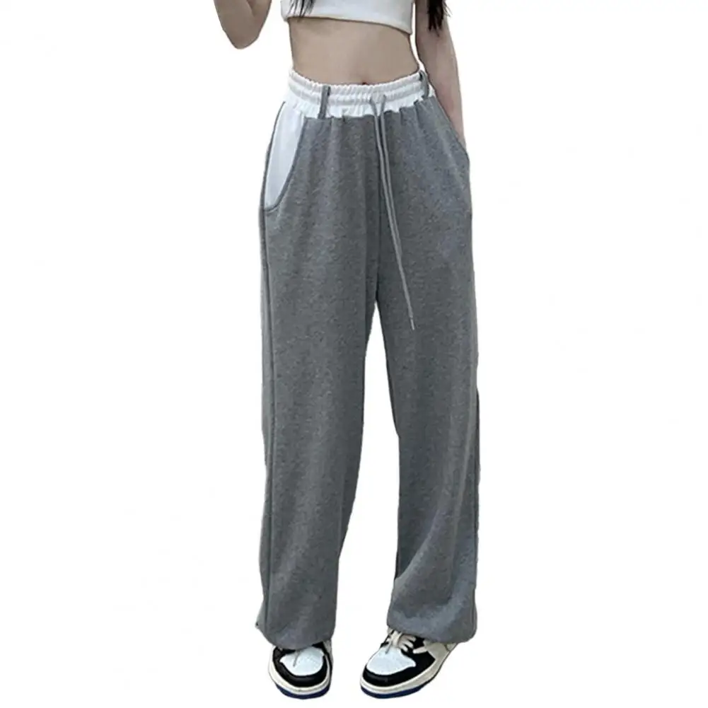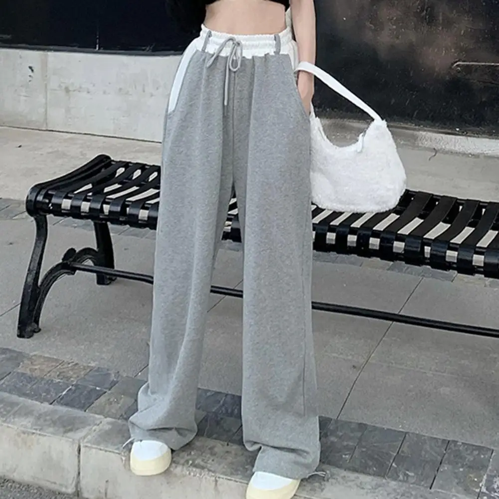 Women Sweatpants Drawstring Elastic Waist Wide Leg Women Trousers Deep Crotch High Waist Loose Lady Fall Spring Sports Trousers