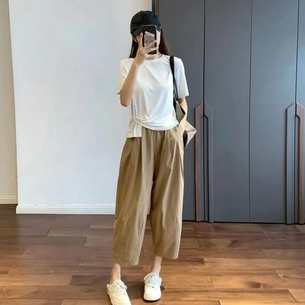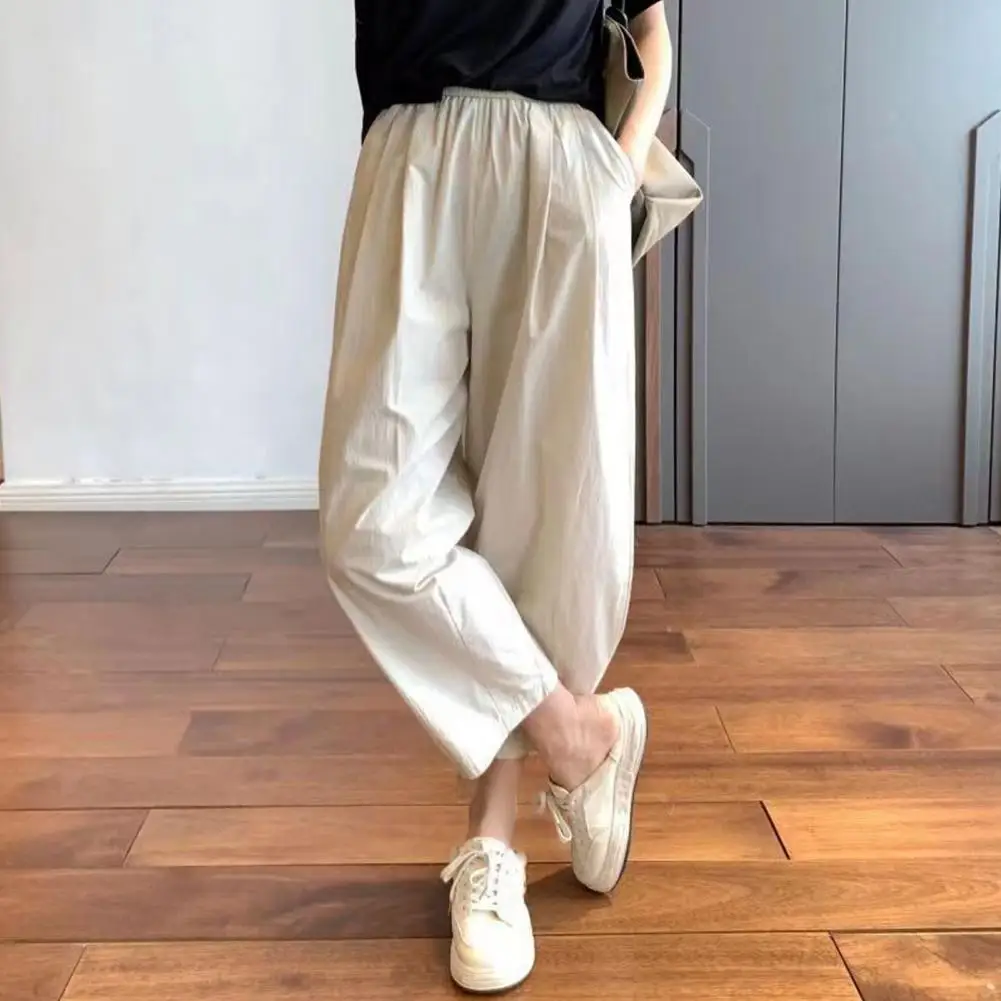 Relaxed Fit Casual Bottoms Wide Leg Women's Harem Pants Elastic Waist Adjustable Drawstring Multi-pocketed Casual Trousers for A