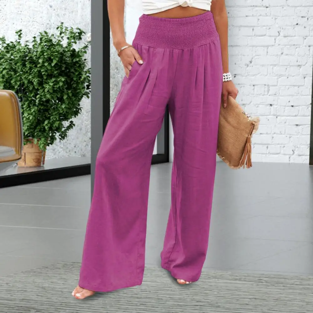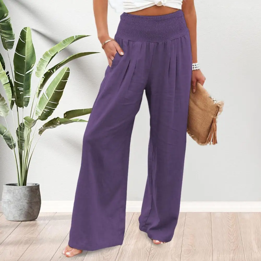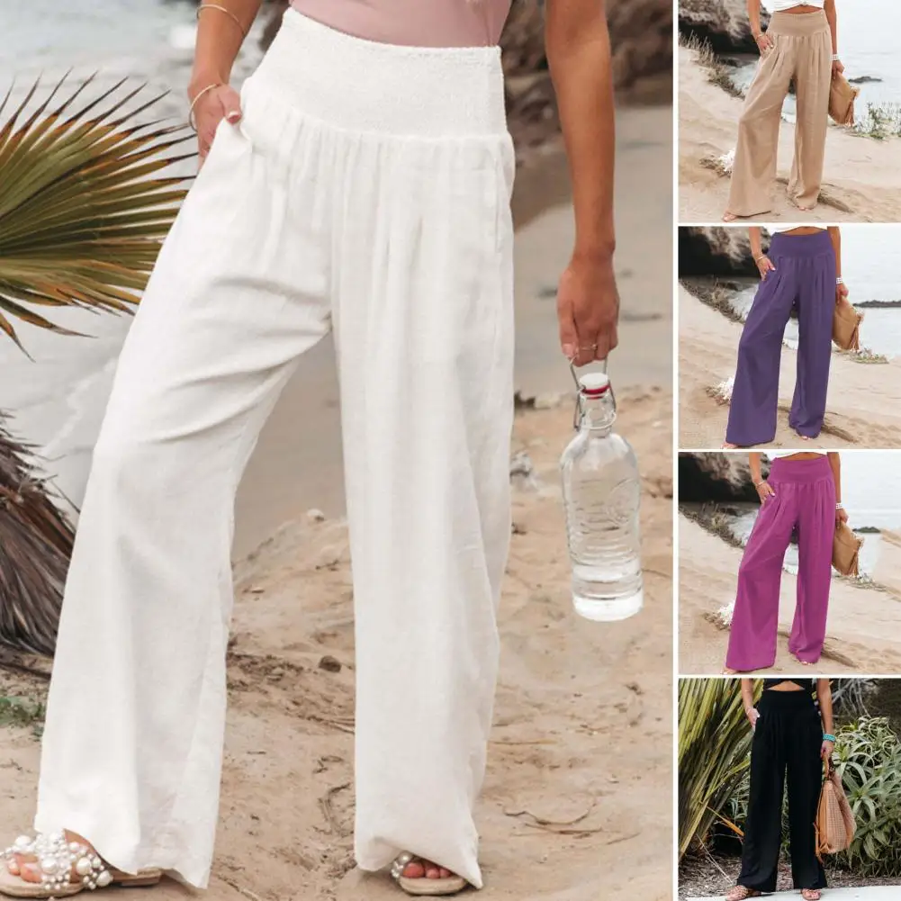 Women Pants Breathable Women's Wide Leg Pants Soft Loose Trousers for Summer Office Casual Wear with Elastic Waist Pockets Soft