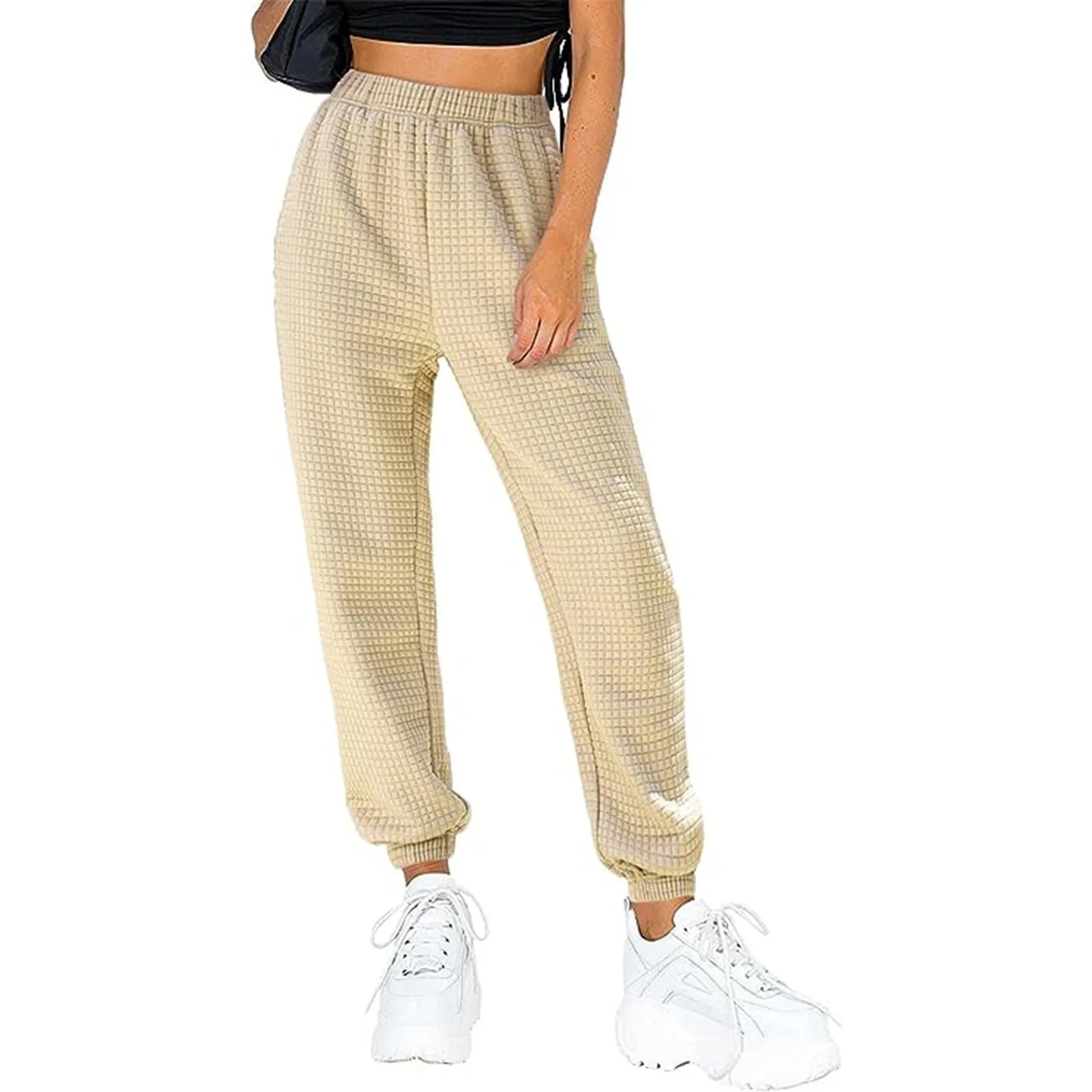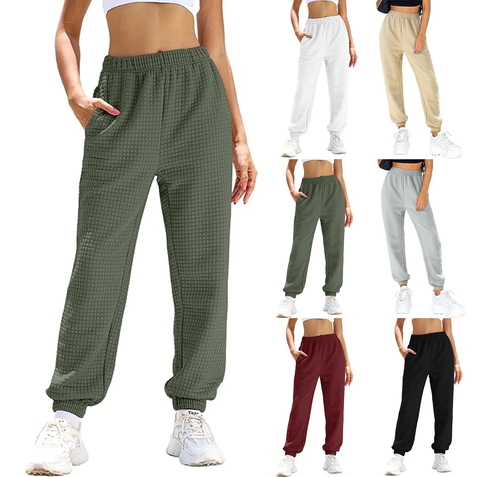Name | Women'S New Waffle Casual Pants Elastic Waist Pocket Fashion Corset Pants Solid Color Casual All Match Comfortable Long Pants |
