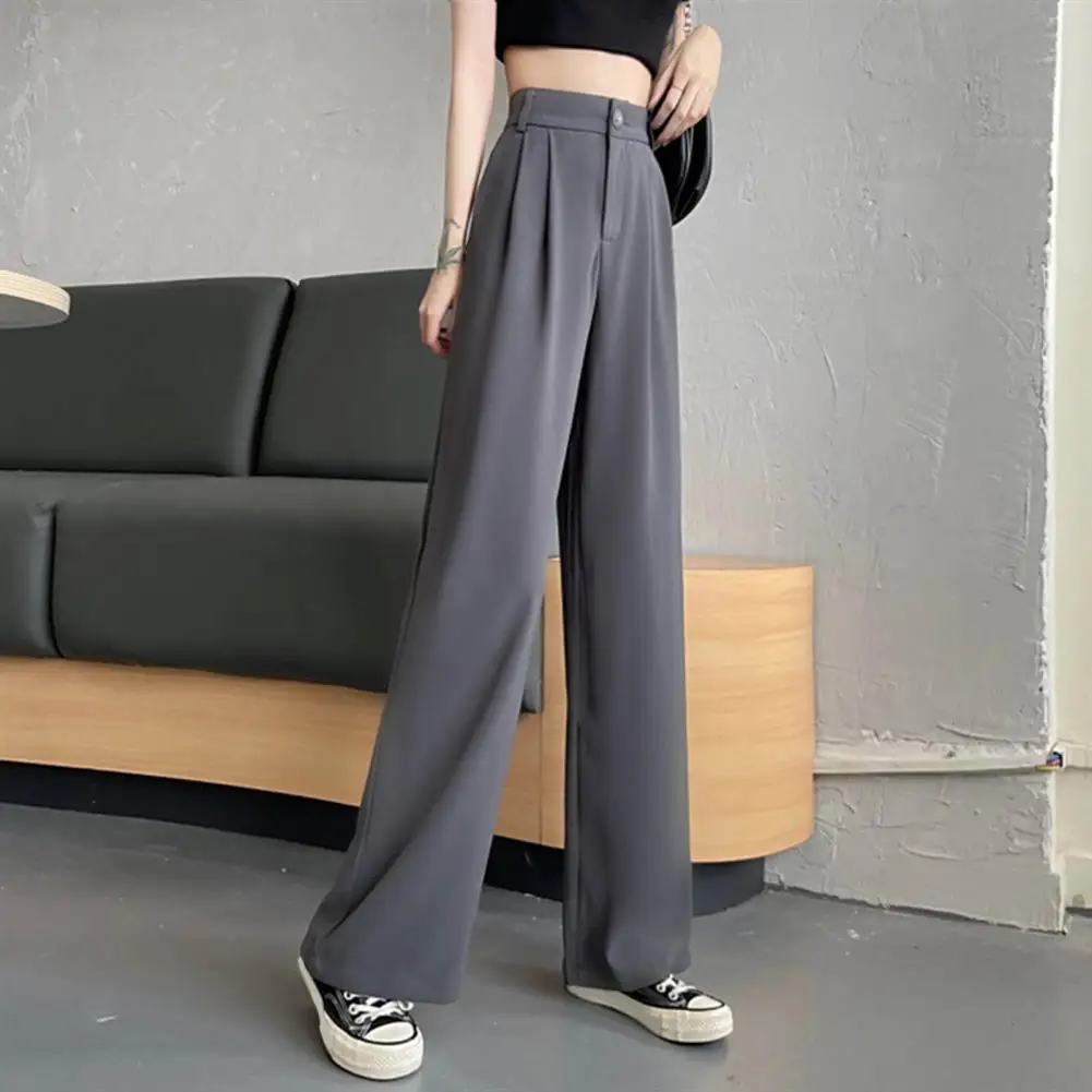 Name | 2024 Women Suit Pants Elastic High Waist Straight Wide Leg Pants Slant Pockets Loose Office Trousers Beaded Slim Fit Base Shirt |