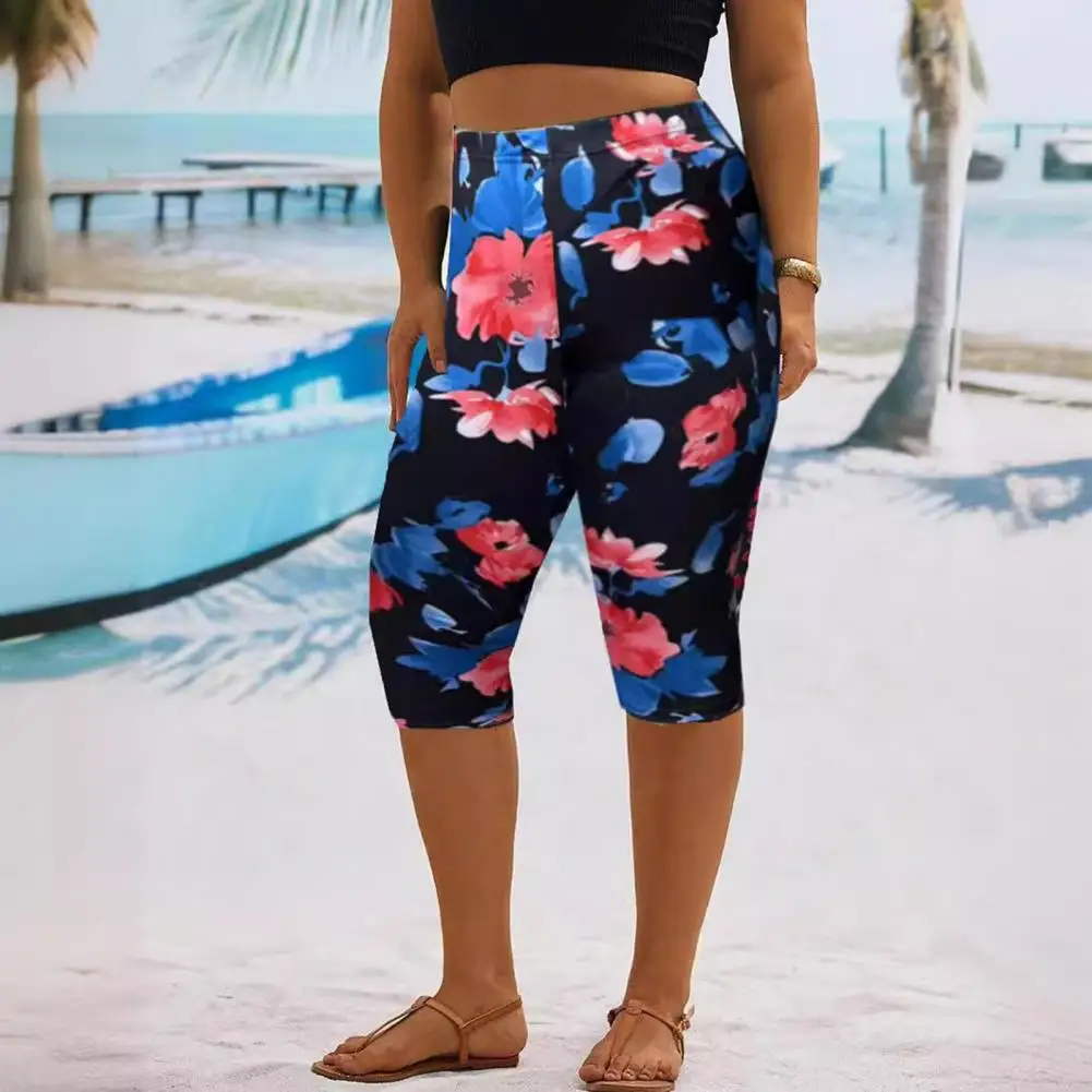 Name | Women Bottoms Stylish Women's Elastic High Waist Cropped Pants with Digital Flower Print Lightweight Comfortable for Casual |