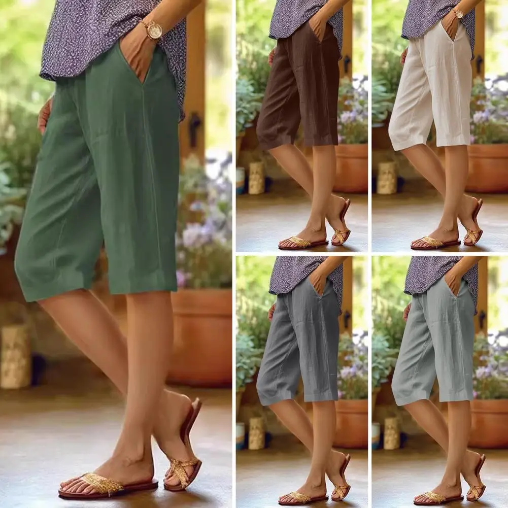 Elastic Waist Casual Pants Stylish Women's Summer Shorts with Elastic Waist Loose Fit Pockets for Casual Daily Wear Women Shorts