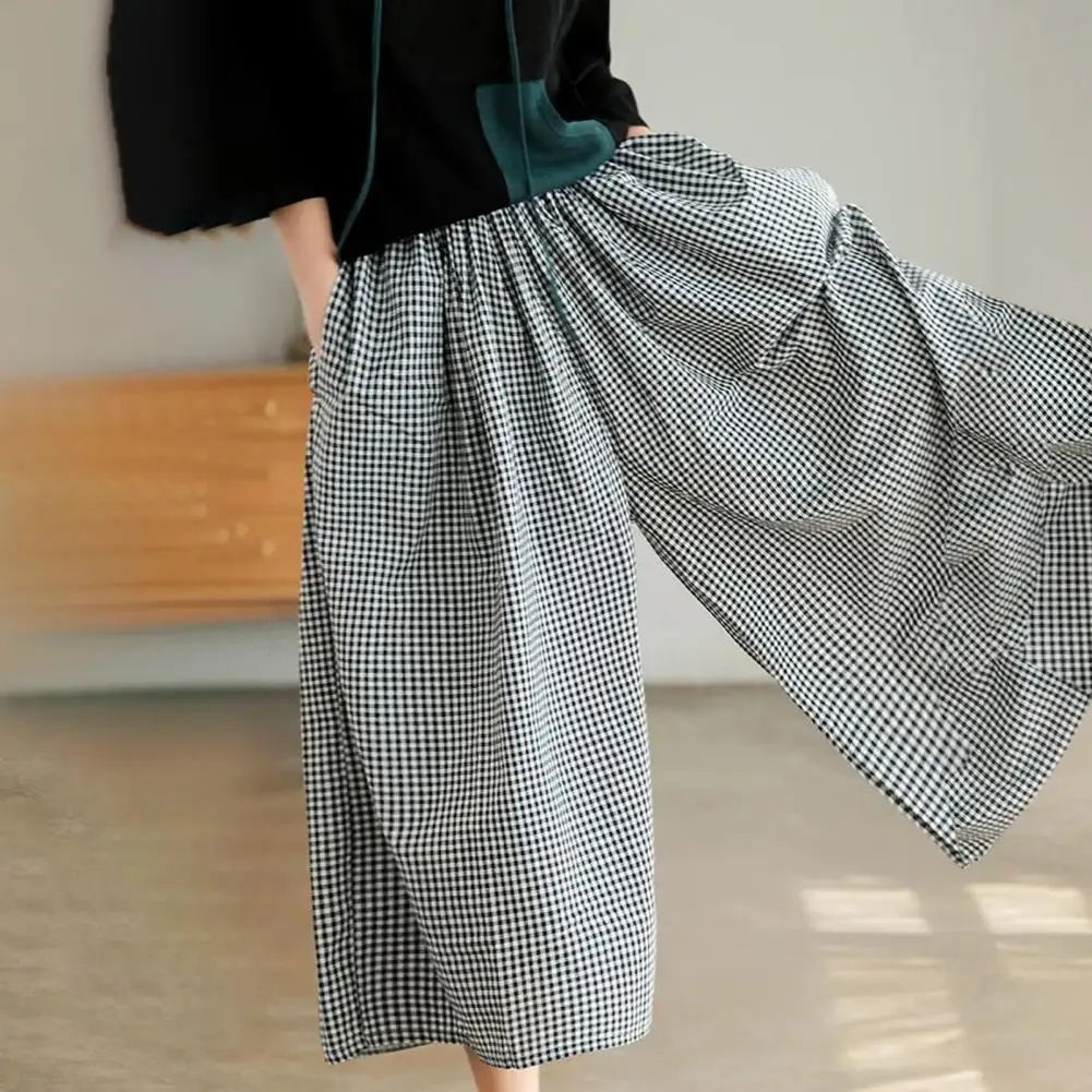 Women Reinforced Pocket Pants Plaid Print Wide Leg Sport Trousers with Reinforced Pockets Stylish Women's Pants for A