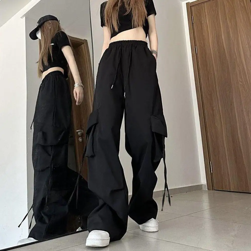 Retro Dopamine Style Women Jogger Pants Europe And America Drawstring Straight Wide Leg Pants Elastic High Waist Cargo Pants