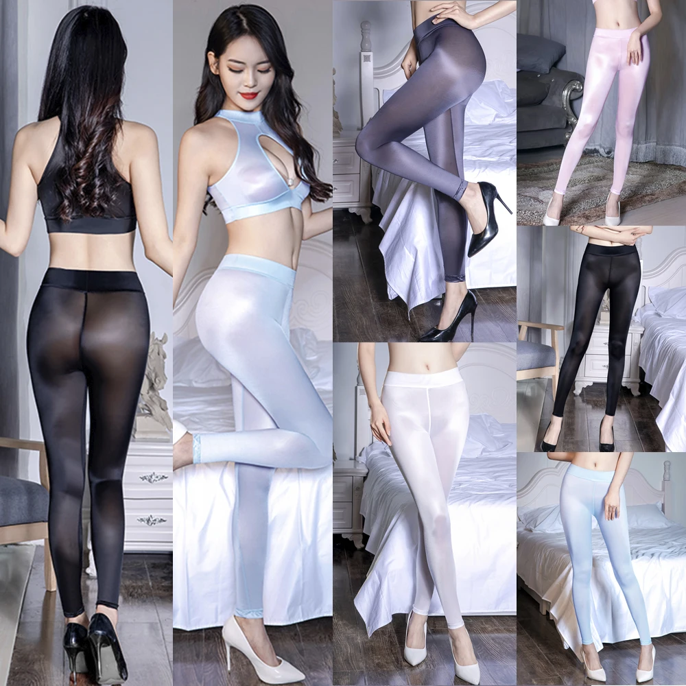 Sexy Women Sheer Leggings Silky Shiny Trousers Stretch Tight Pants Clubwear