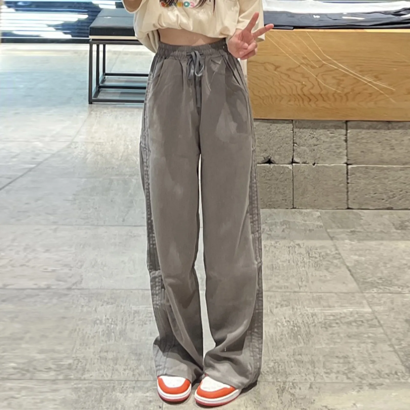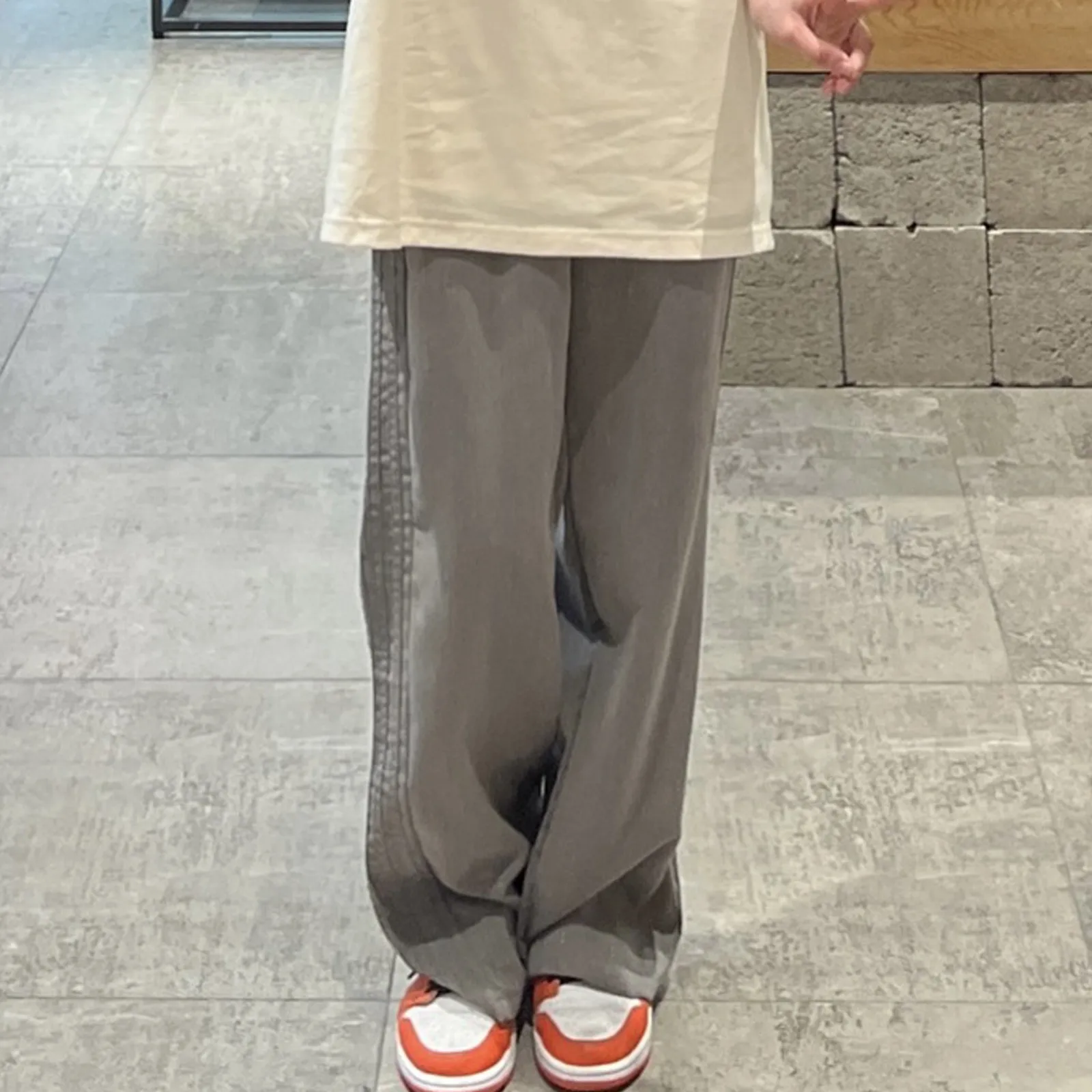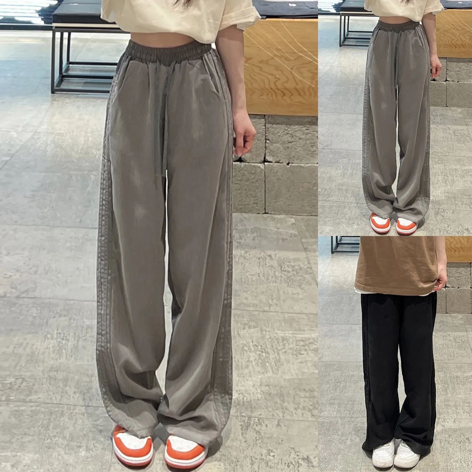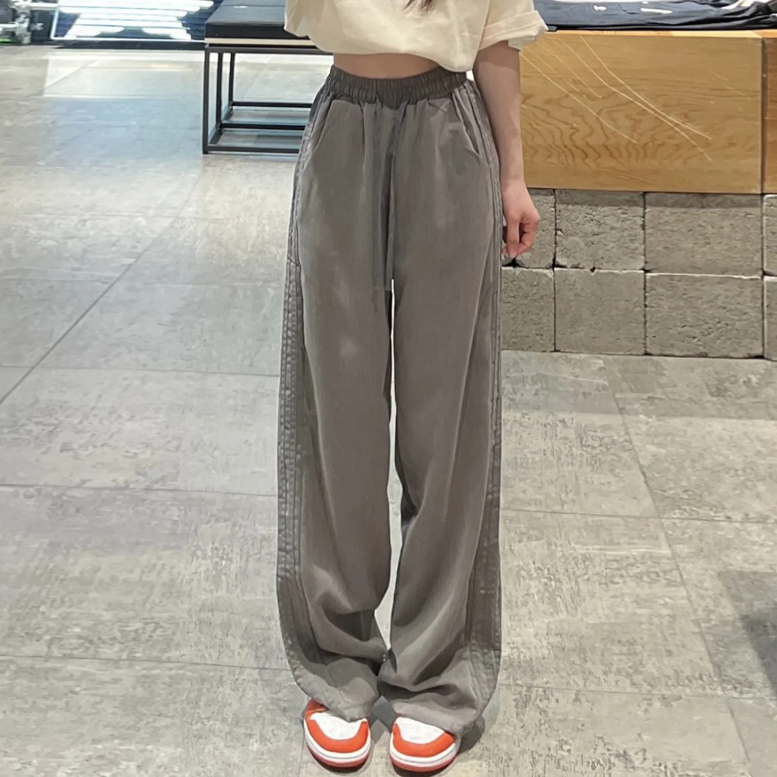 Women's Long Pants Retro Side Stripes Casual Loose Fitting Flesh Covering Suit Pants Wide Leg High Waist Comfortable Costume
