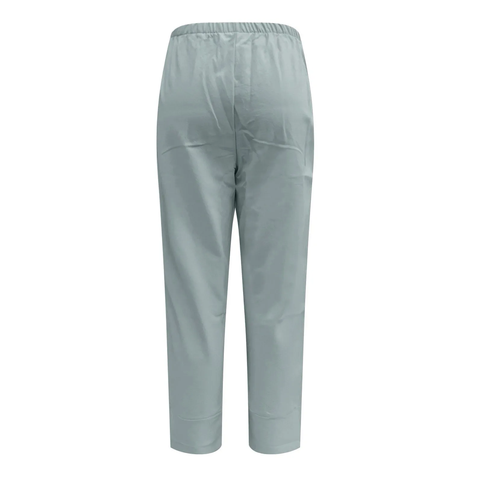 2024 Women's Casual Cotton Linen Harem Pants Printed Wide Leg Trousers Solid Pockets Harajuku Style High Waist Baggy Pants