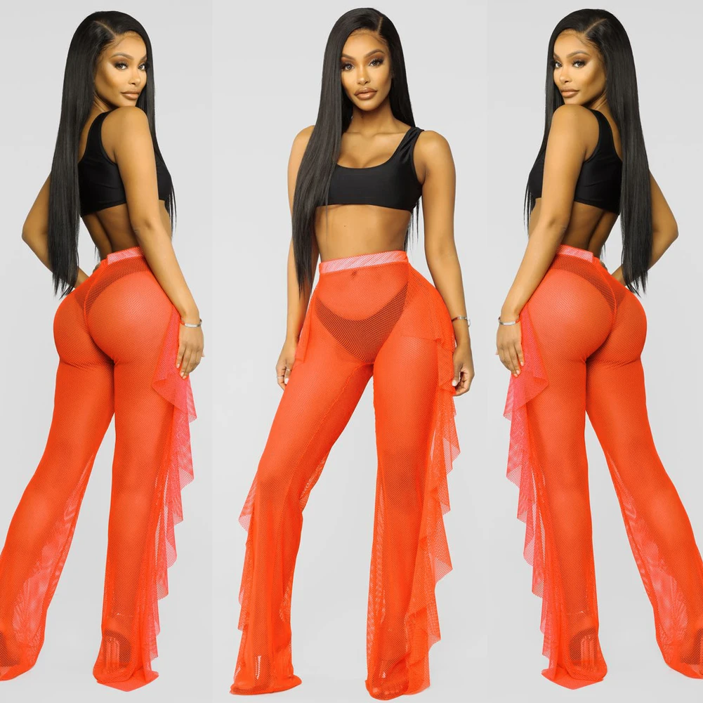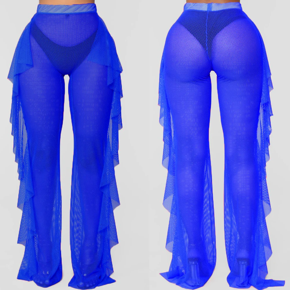 Name | Women Beach Pants See Through Sheer Mesh Ruffle Cover Up Pants Solid Beachwear Women Swimwear Swimsuit Cover Up Trousers |