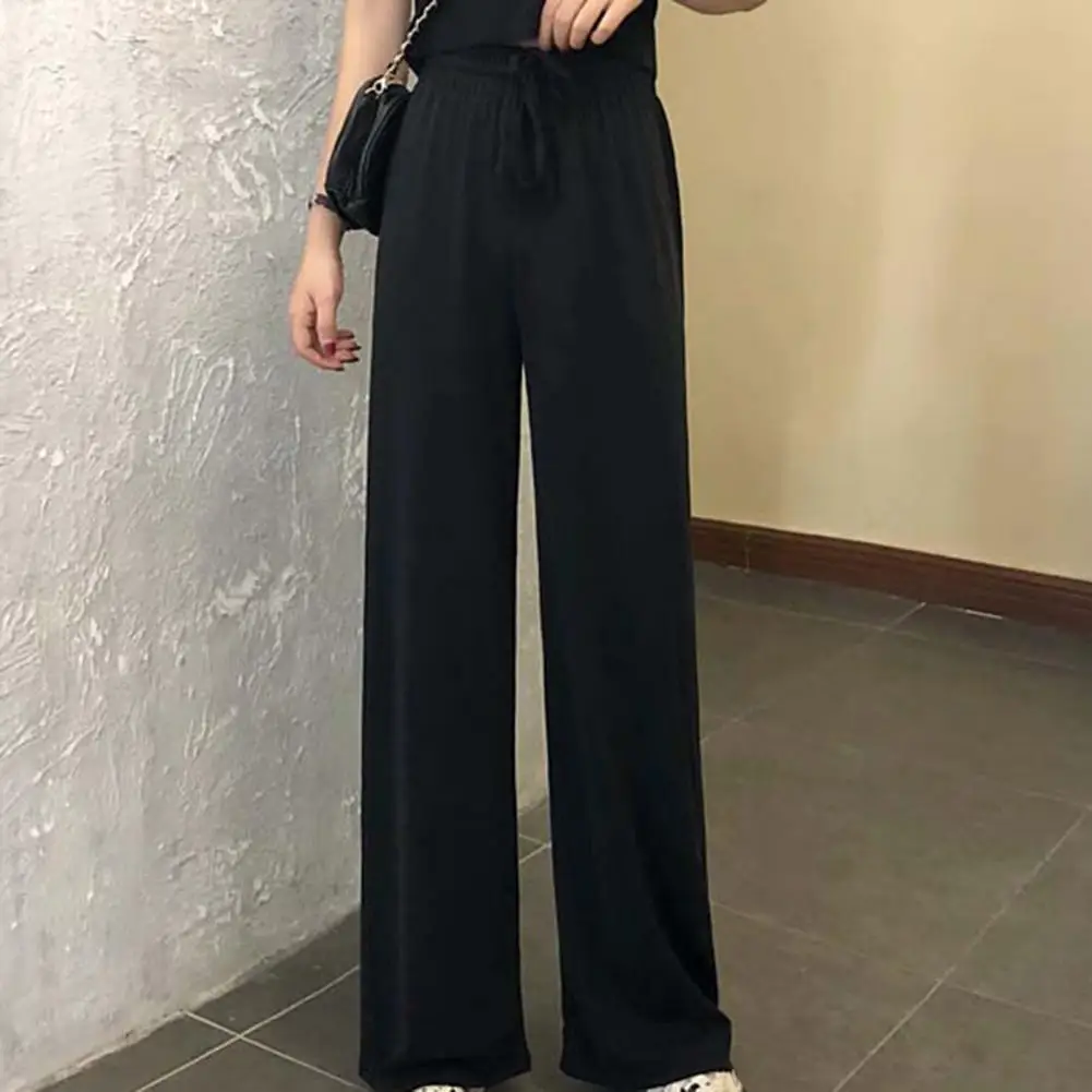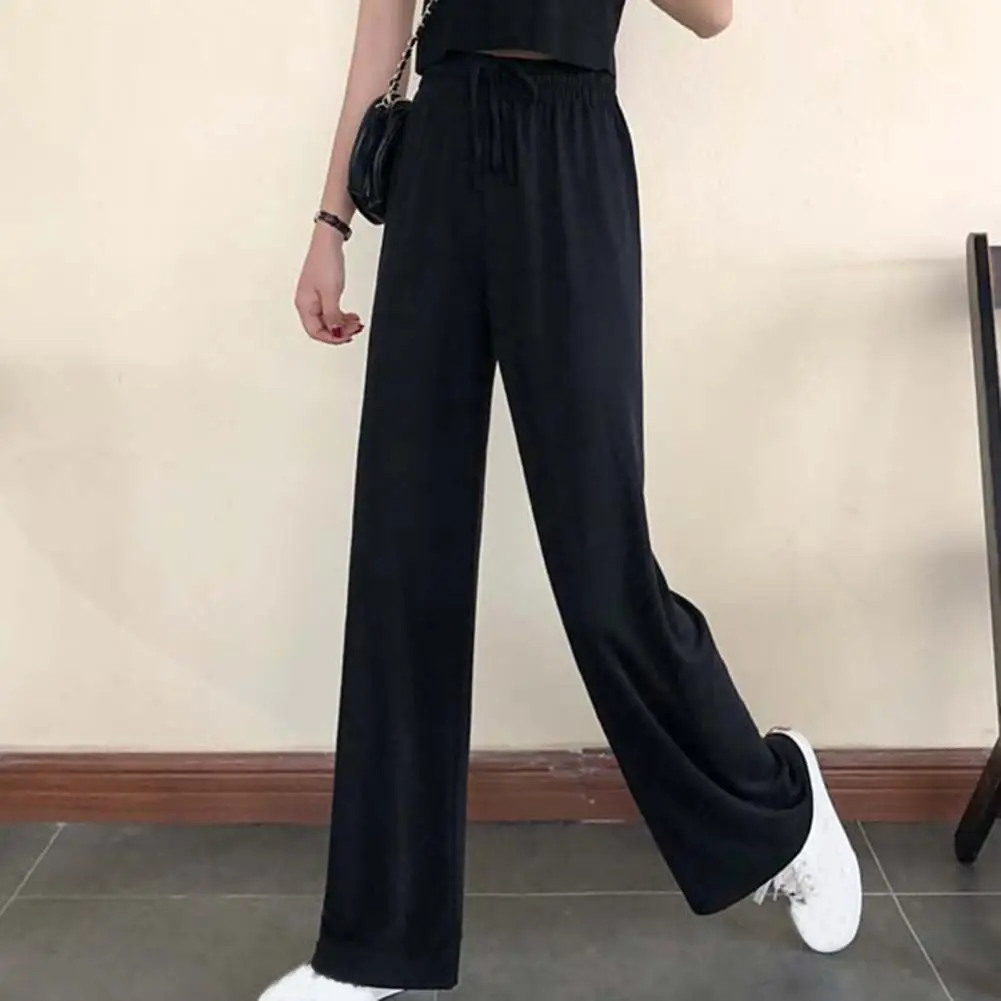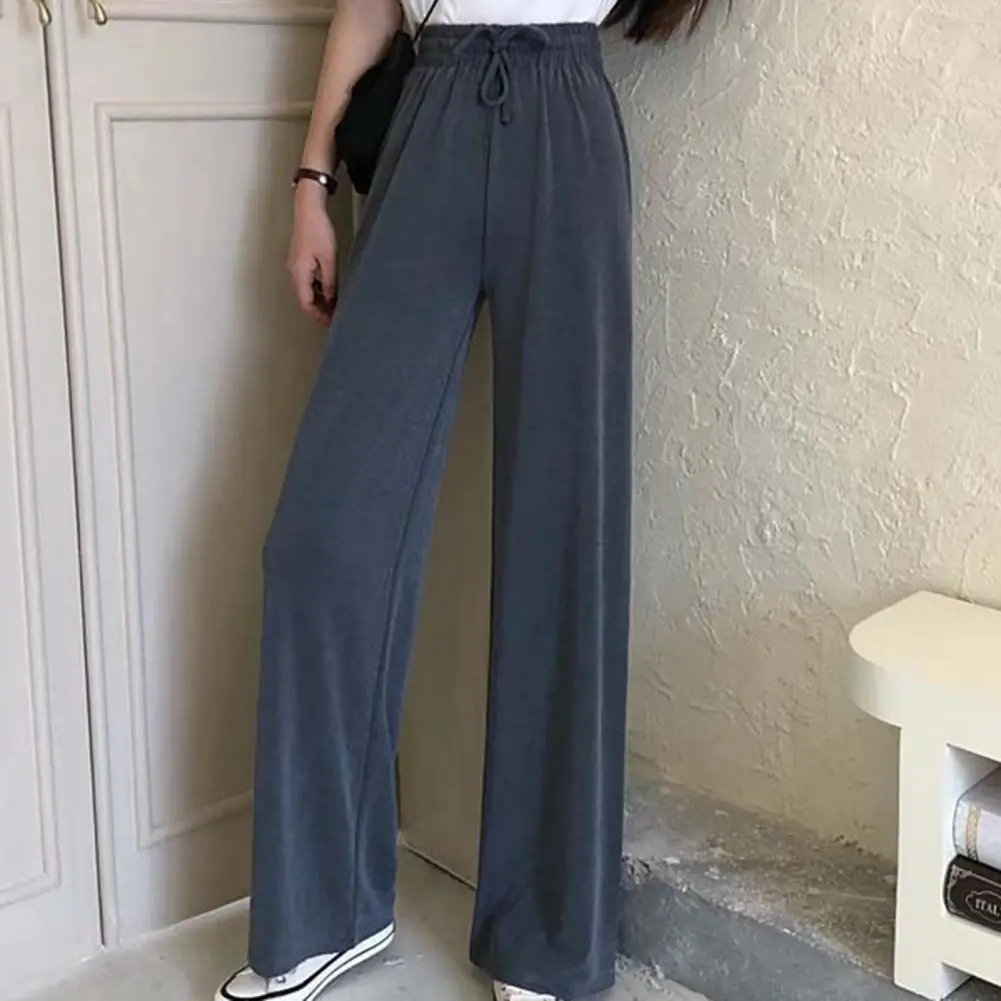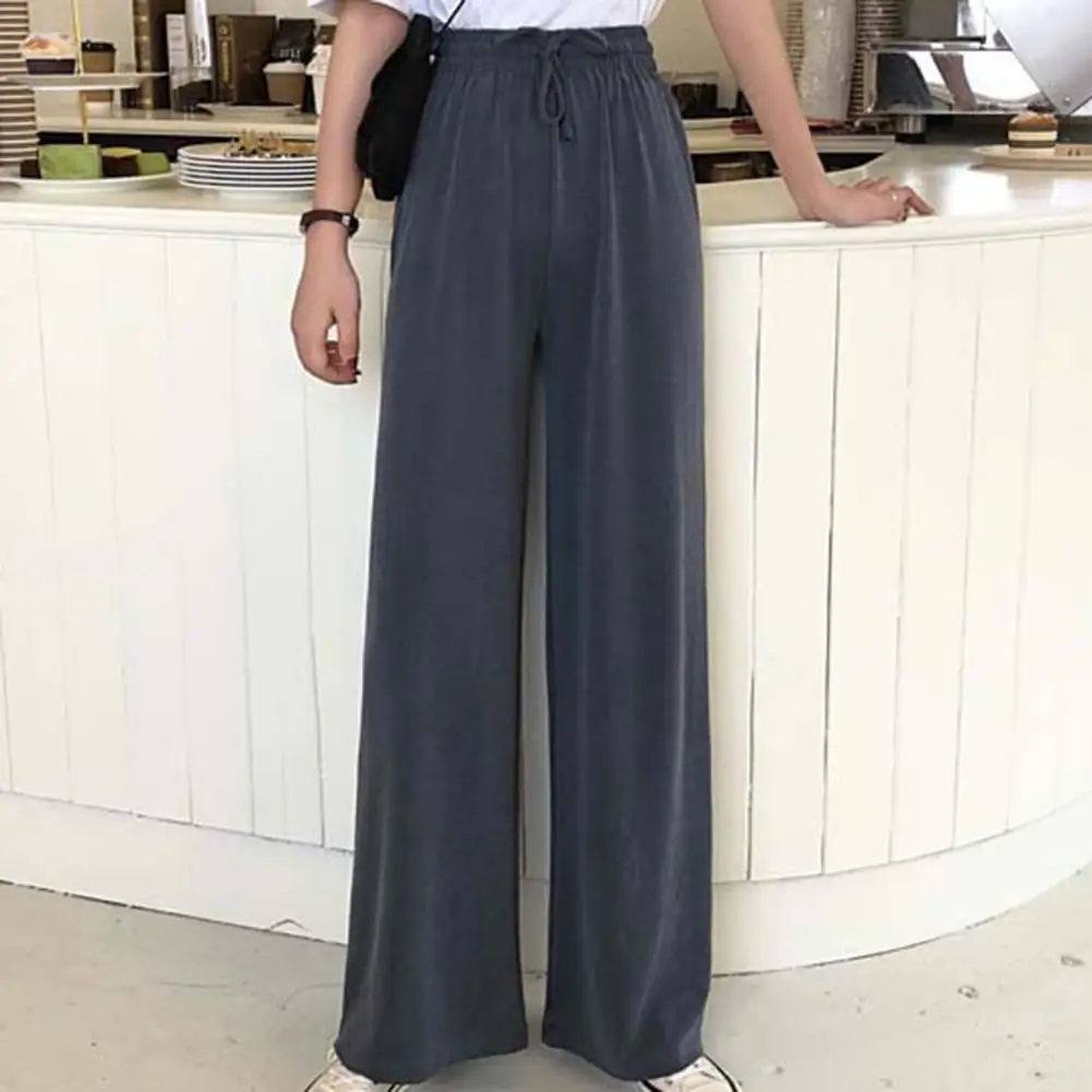 Name | Girls High Waist Wide Leg Lace Up Lady High Street Straight Leg Pants Female Retro Blue Light Blue Black Gray Pink Trousers |